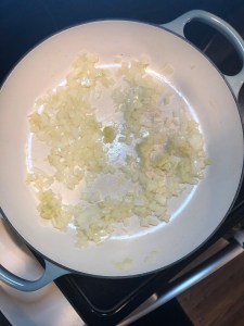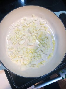 Step 2: Once the onions are golden, add in the minced garlic. Stir the garlic consistently, to prevent it from burning. Cook for 3 minutes, or until garlic becomes fragrant. Make sure to watch the garlic, because it will burn quickly, which will not produce the desired result.