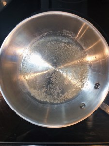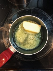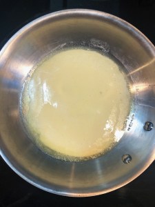 Step 1: In a medium sauce pan heat the butter over medium heat stirring occasionally. You want the butter to become browned – it will have a nutty aroma when it is finished. You can keep on the stove while you prep the batter, just make sure to check on it!