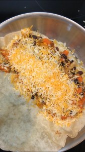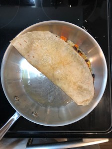 Step 10: Fold the tortilla over to close. Cover with a lid to allow the cheese to melt for 3-4 minutes.