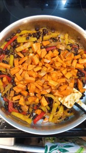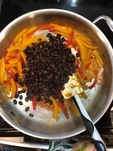 Step 6: Stir in the black beans and sweet potatoes. Mix until well incorporated. Set aside.