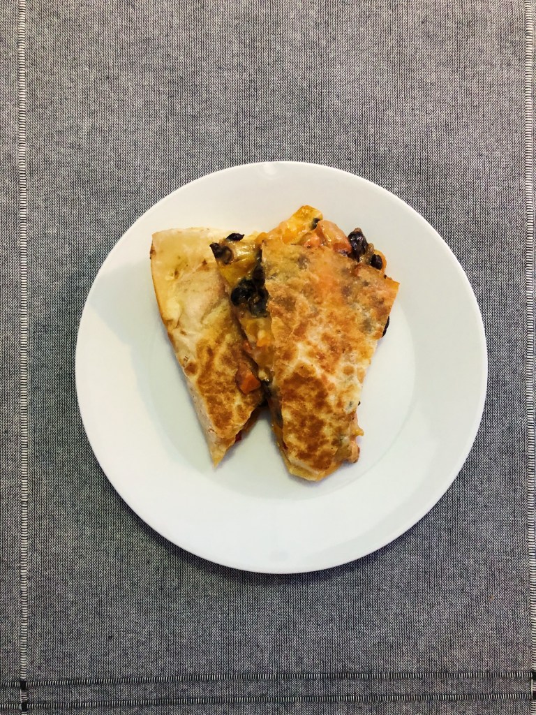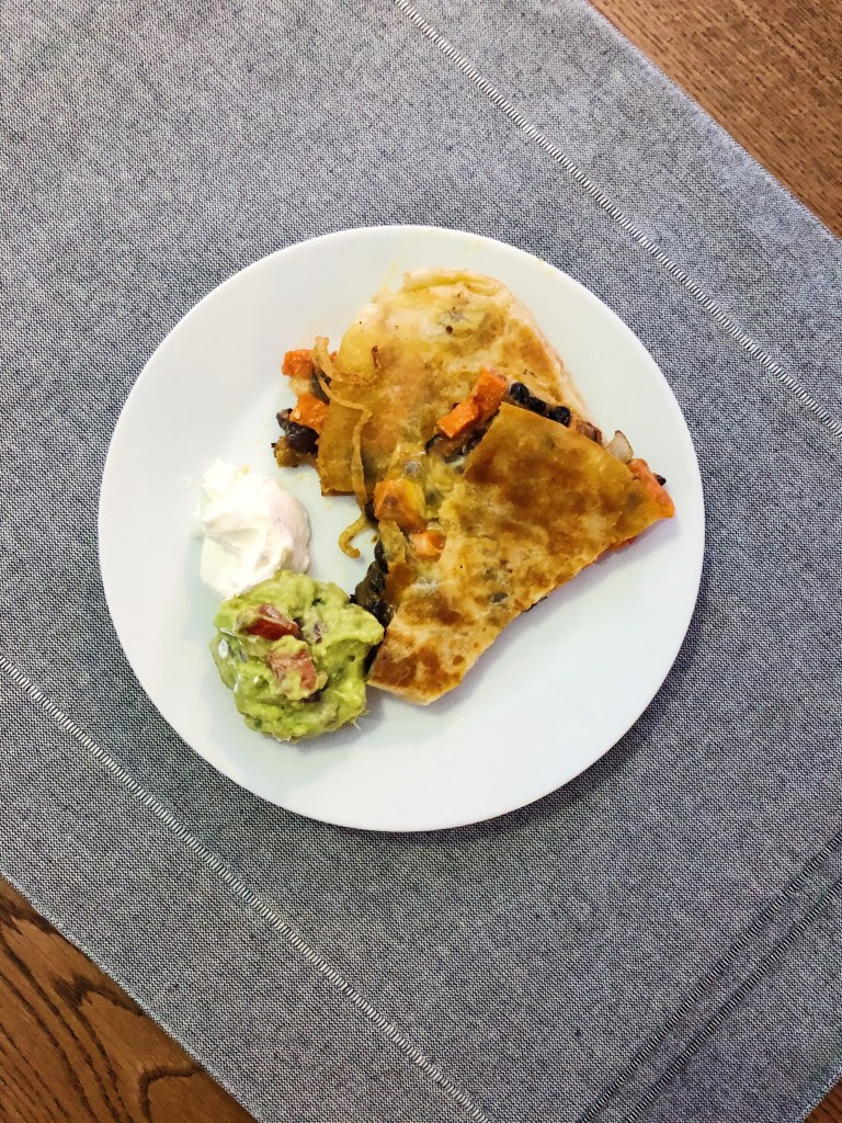 Quesadillas are such a delicious and easy dinner! There are so many options to stuff them with that the combinations are endless. These are completely vegetarian but you won’t even miss the meat! The roasted sweet potatoes add a soft texture to contrast the crunch of the bell peppers. They also add an incredible flavor – not to mention are packed full of nutrients! This quesadilla is so flavorful, you almost won’t believe that it is fairly healthy! I mean, it still does pack some calories with the cheese, but gotta have cheese to get that cheese pull, right? And cheese is delicious – its my favorite food group! Anyways, whip this up for your next Mexican inspired dinner and serve alongside some guacamole! To try my best guacamole recipe click here.
