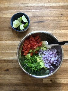 Step 2: Lightly mash the avocado – if you like your guac chunkier then don’t mash as much.