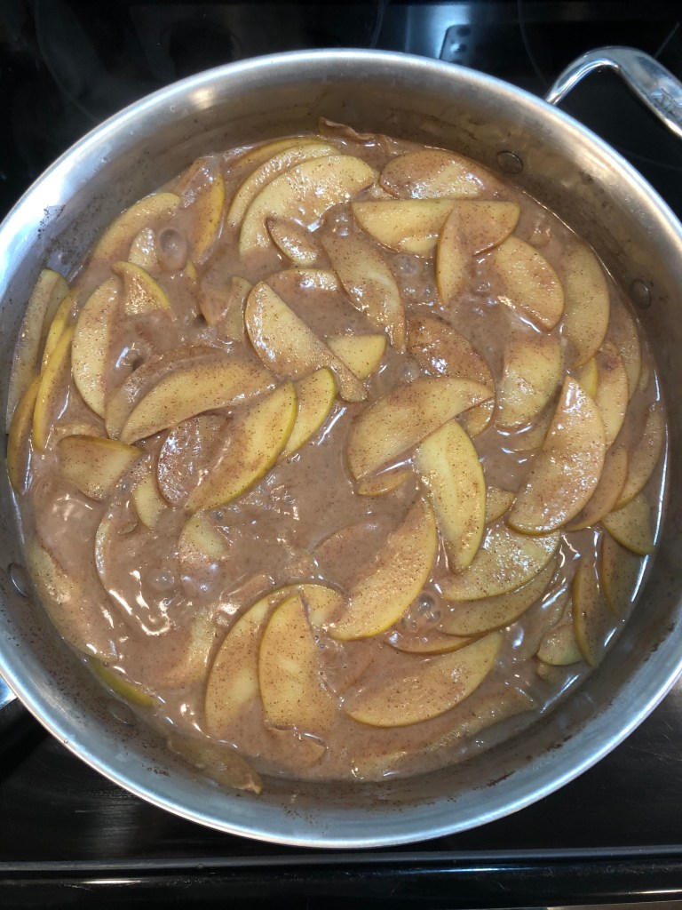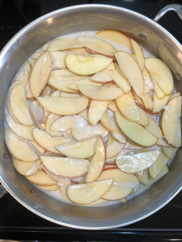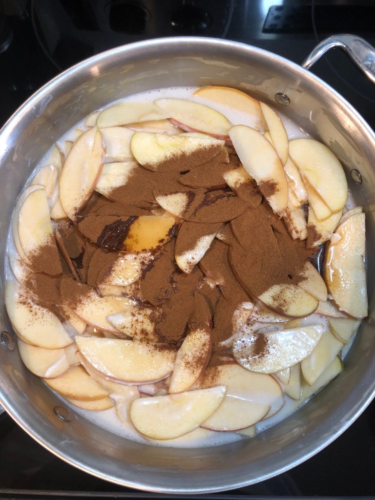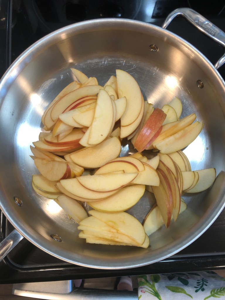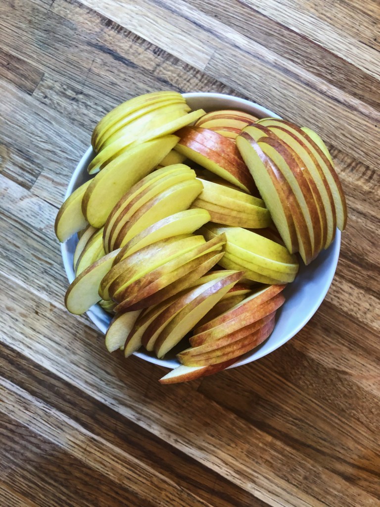 - Core and slice the apples – you want to slice them pretty thin so they can get nice and soft while they cook!