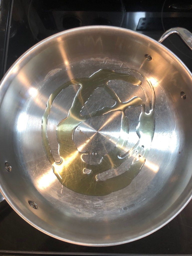 - Heat a large pan over medium heat and add 1 tbsp of oil.