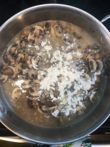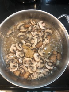 Step 3: Add in the mushrooms and cook for 3-5 minutes so they begin to soften. Season with salt and pepper.