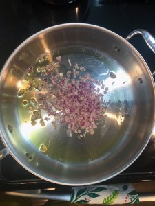 Step 2: Heat a large pan over medium heat and add the oil. Once the pan is heated, add the shallots and cook until softened – about 3-5 minutes.