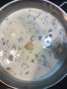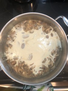 Step 6: Pour in the cream and continue stirring as the sauce will continue to thicken.