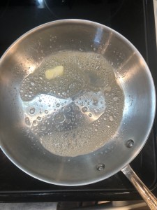 Step 8: Set the sauce aside and heat another large pan over medium to high heat. Once the pan is very hot, add 1 tbsp butter and swirl it around to coat the bottom of the pan.