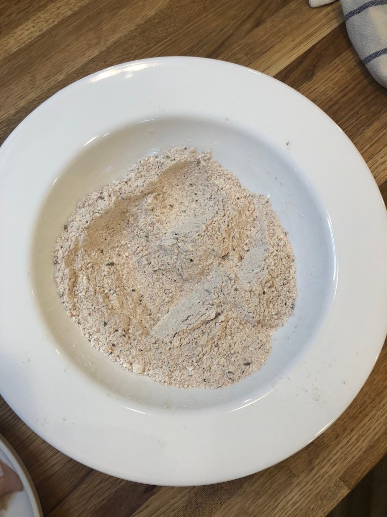 - Fifth Coat (and final coat) – dip the chicken in the panic brad crumbs. Coat well and shake off any excess – set on a clean plate.
