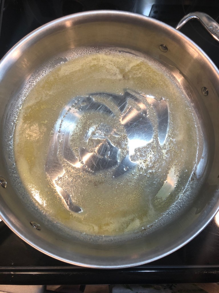 - Heat a large pan over medium heat and add the butter. Allow the butter to fully melt.
