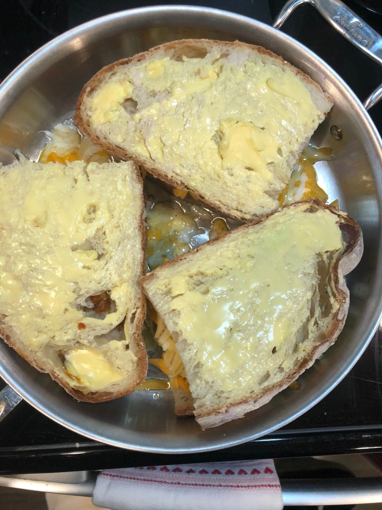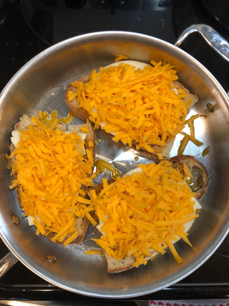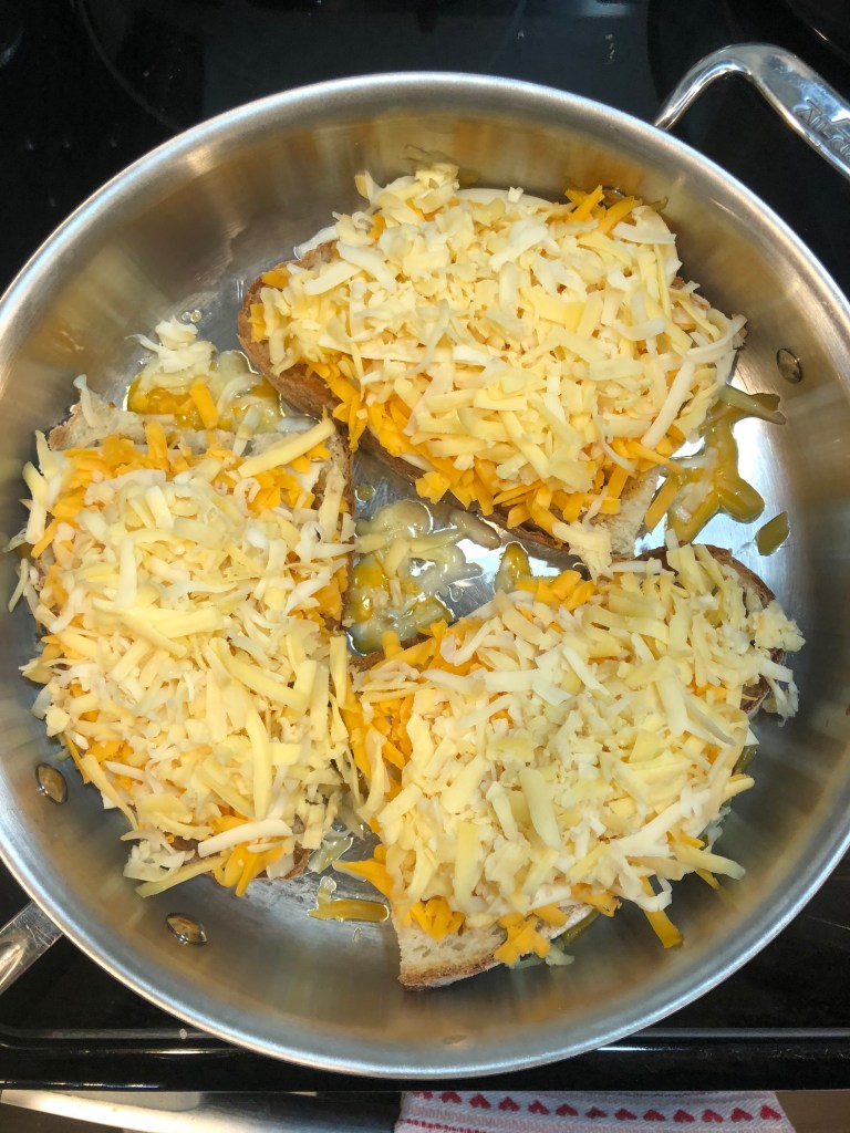 - Repeat steps 4-8 until all the bread and cheese has been used! You can fit multiple sandwiches depending on how large your pan is, but make sure not to overcrowd.