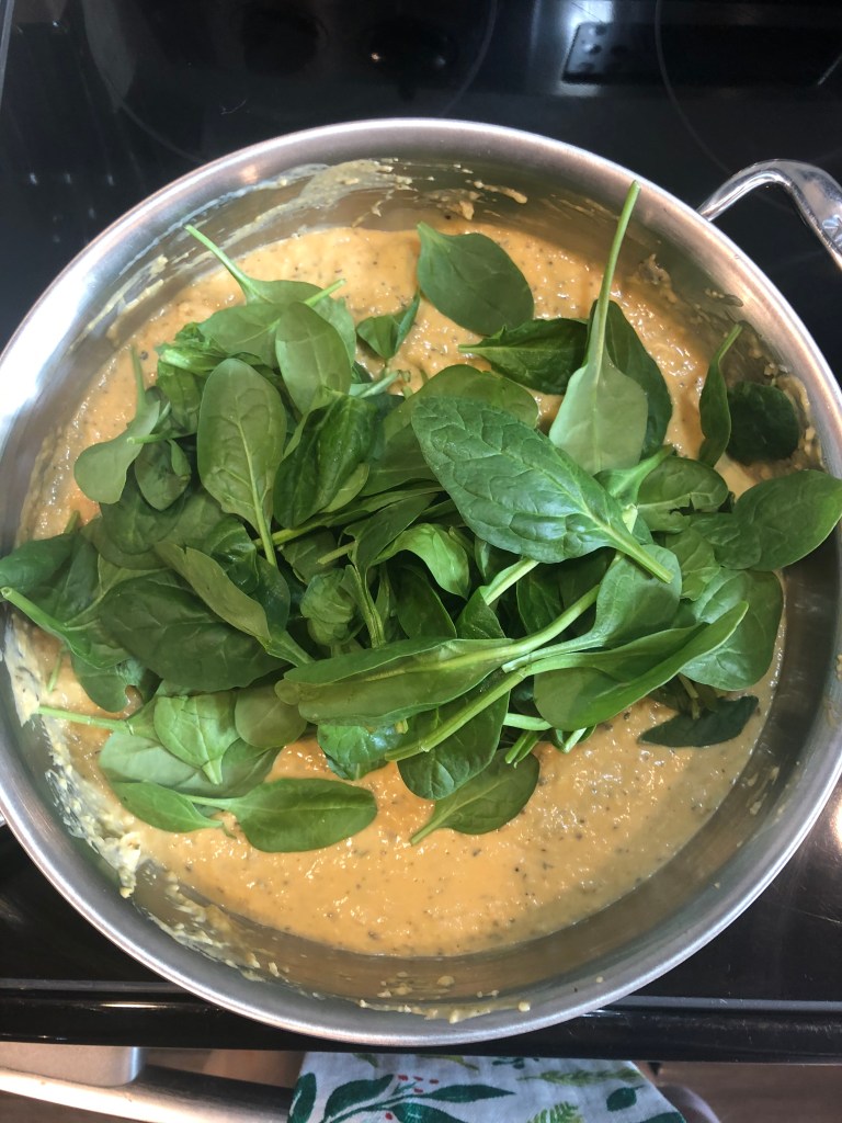 - Add in the spinach and allow the spinach to cook for about 5 minutes.