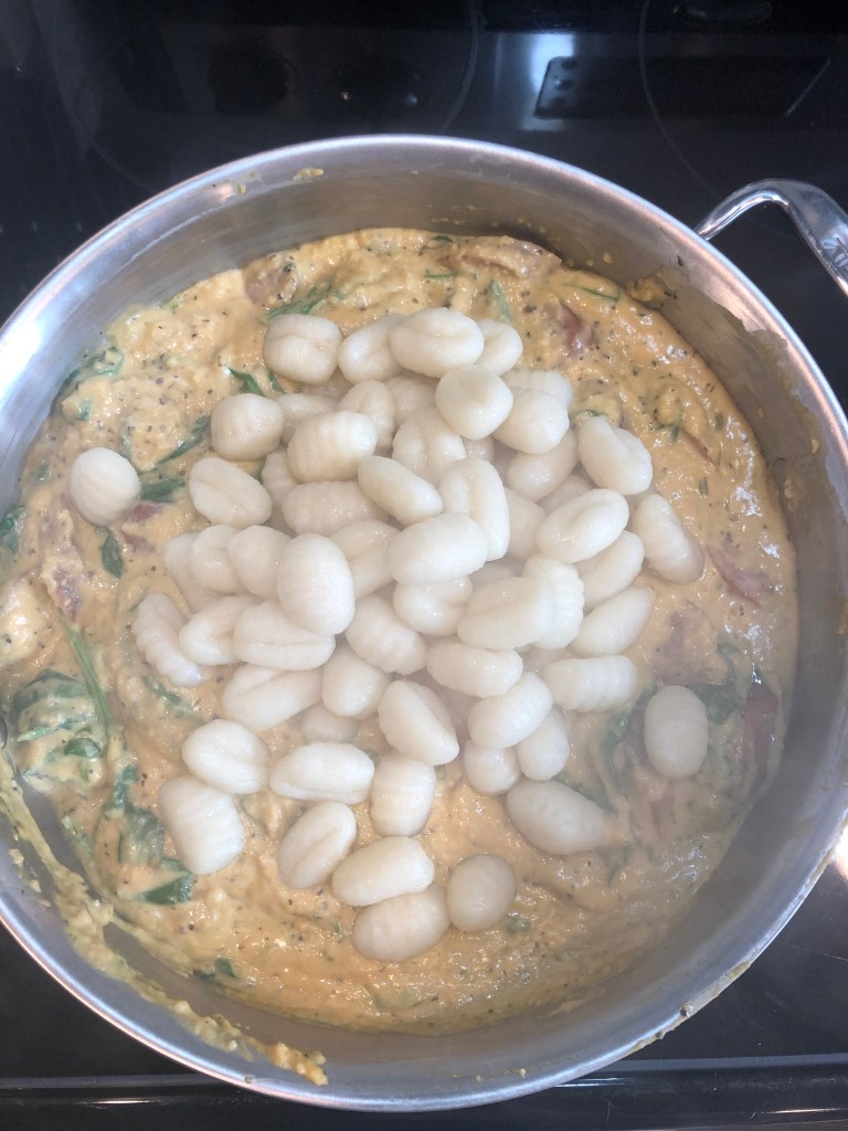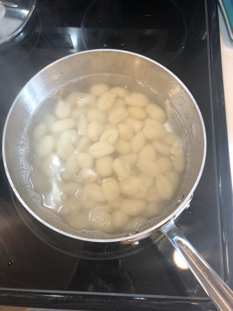 - At this point, the water should be boiling – add the gnocchi and cook according to the package – mine only took 3-5 minutes.