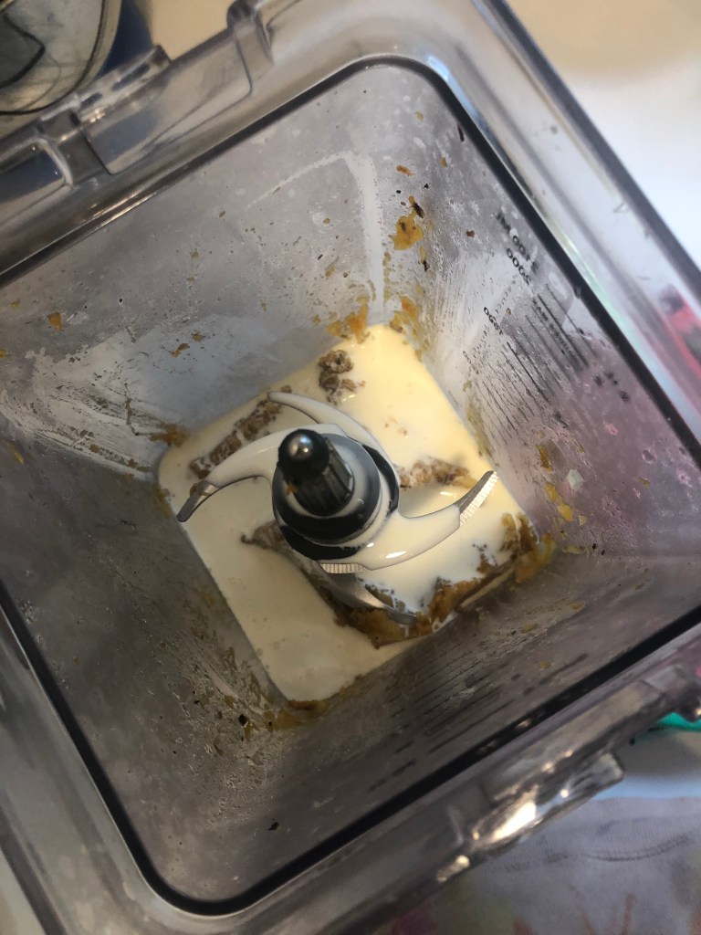 - Add the cream and broth to the blender and continue mixing until the sauce is smooth.