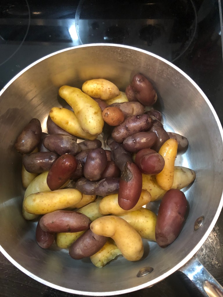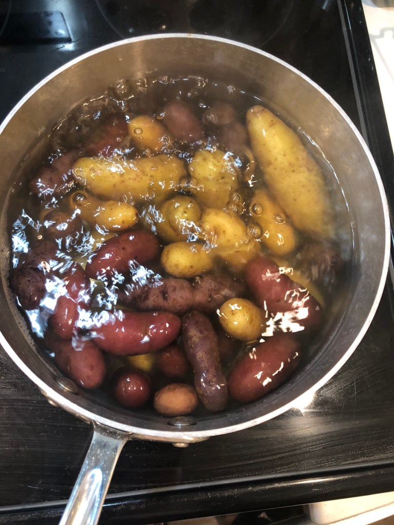 - When the potatoes are tender, drain the water and leave them in the pot.