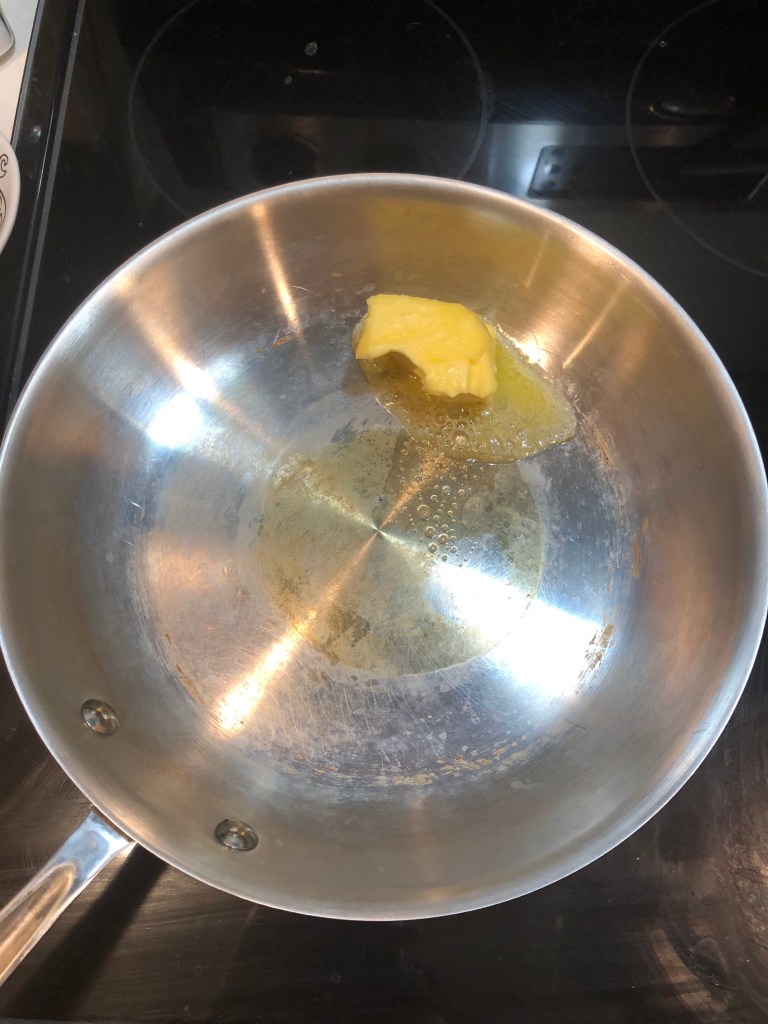 - Next lets make the steak. Heat a large pan over medium-high heat and add the butter.