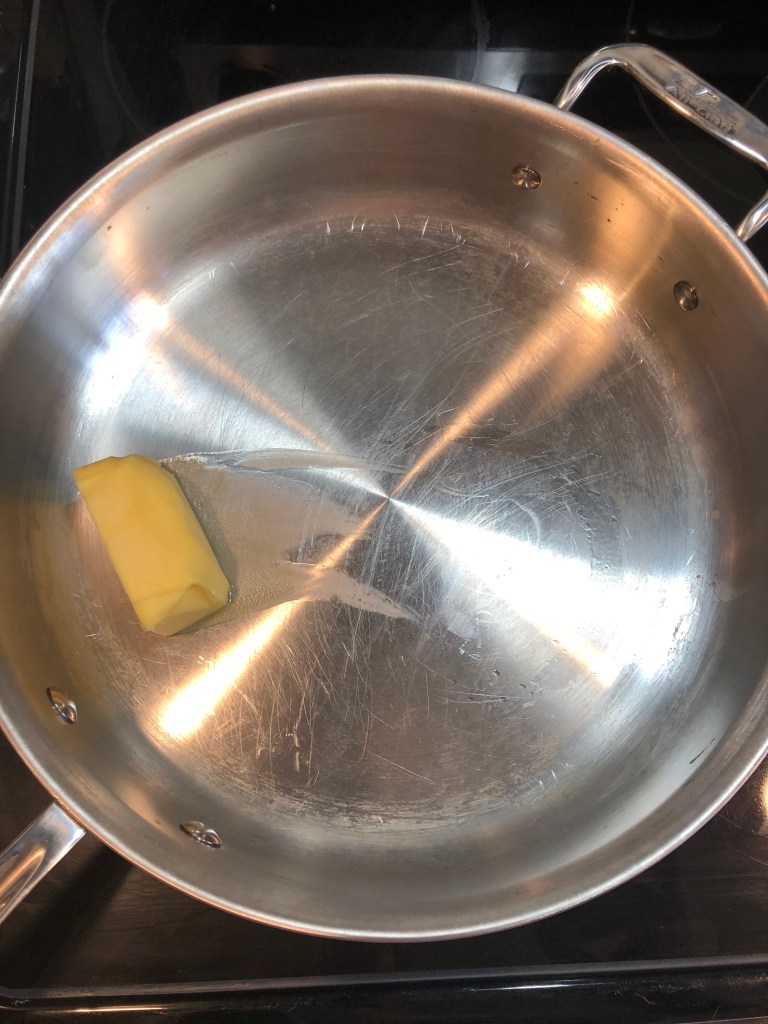 - Heat a large pan over medium heat and add the butter. Allow the butter to fully melt.