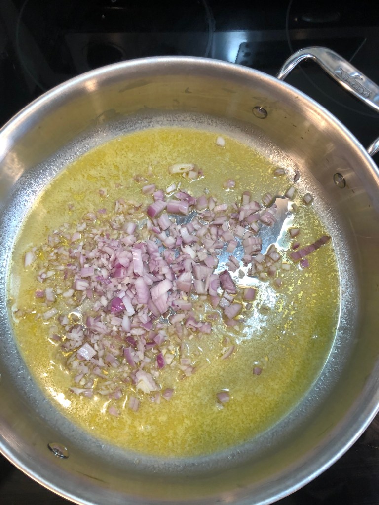 - Once the butter is melted, add the shallots and cook until softened – about 3-5 minutes.