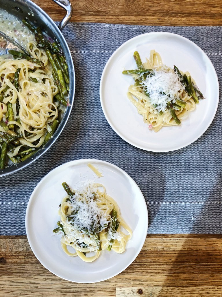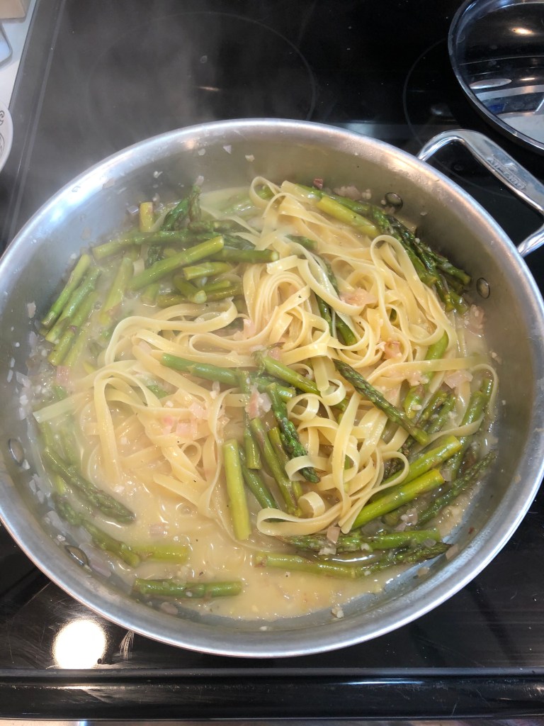 Nothing is better than a bowl of pasta, especially after a long day. But pasta always has me feeling heavy. It doesn’t have to be that way though! This dish is perfect for when you want pasta but also want something light and fresh. The asparagus adds a nice crunch and a vibrant green color, and is a delicious way to get in some extra veggies! The sauce is made using 3 ingredients – butter, wine, and lemon juice – so it is light and easy and won’t have you feeling like you need a nap after eating it! The lemon really comes through for a bright, tangy flavor that helps cut through all the carbs in the pasta. Good luck not eat all of it in one sitting, it’s THAT tasty!