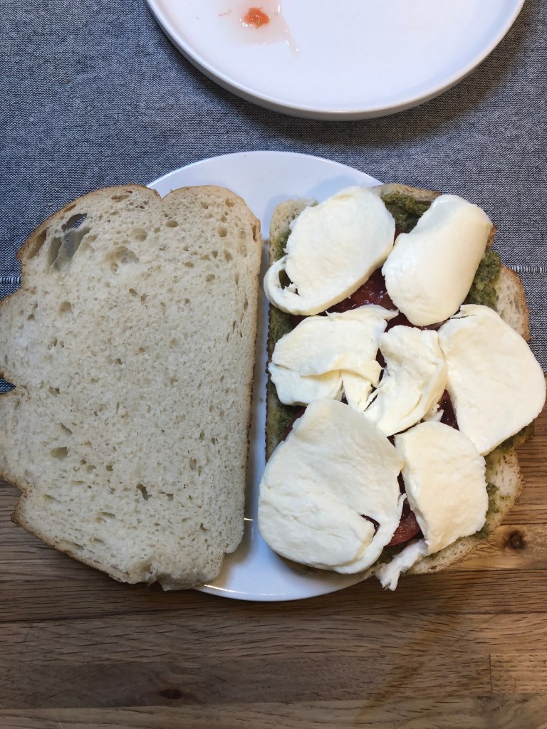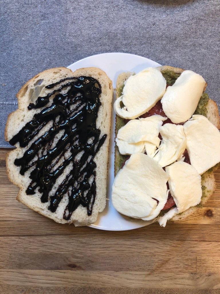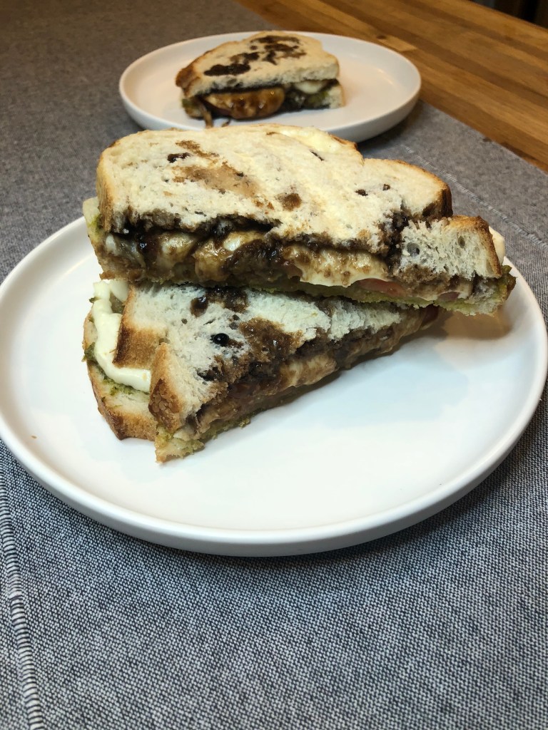 - Top with the balsamic piece of bread.