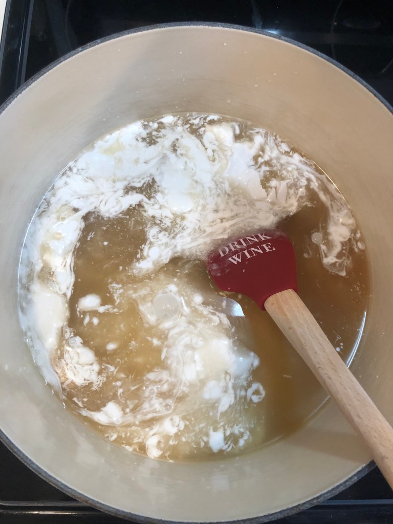 - Add in the can of coconut milk and whisk until it is fully melted and incorporated.