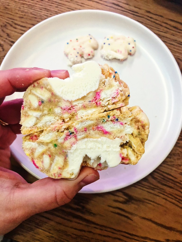 I ordered the G.O.A.T pack which comes with a variety of 6 cookies for $24 not including shipping. The pack includes: Better than Sex, Frosted Animal Cheesecake, Peanut Butter Bomb, Cinnamon Roll, Em’s Sexual Chocolate, and Funfetti Buttercream. So what are these bad boys filled with? Better than Sex is filled with white chocolate chips, crushed oreos, twix, buttenrcake and buttercream. Frosted Animal Cheesecake is a cheesecake cookie base with white chocolate chips, circus animal cookies, and cream cheese frosting. Peanut Butter Bomb is full of chocolate chips, peanut butter chips AND cups, and Reeces pieces. Cinnamon Roll has white chocolate, cinnamon chips, cinnamon rolls, and cream cheese frosting. Em’s Sexual Chocolate is filled with milk chocolate chips, dark chocolate oreos, nutella and brownie (WOW!). And finally, Funfetti Buttercream is a confetti cake cookie base, white chocolate chips, and buttercream frosting. I also ordered a Circus Rush ($5) which is filled with white chocolate, circus animal cookies, rainbow sprinkles then stuffed with buttercake and buttercream drizzled with white chocolate and topped with a circus cookie. It is too hard to choose a favorite because they were seriously all so tasty. But I am a sucker for funfetti and oreos.