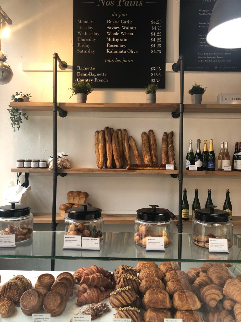 La Parisienne – oh how I love you so. My friend recently recommended this place when I mentioned I was looking for a great chocolate croissant in Seattle. Seattle has a lot of bakeries with a lot of delicious options, and while I have enjoyed almost every croissant I have eaten, I still had not found that croissant that gives you that “oh yes” moment. Well until I walked in here. I obviously had to get a chocolate croissant because they are my favorite, but we also got an assortment of pastries and other items. Before I tell you how it was, let me just set the tone and build the suspense a bit. Walking in to this shop immediately transports you to Paris, France. You are greeted with warm welcomes and the smell of enticing baked goods. The shop is so warm and welcoming and I honestly did not want to leave. I wanted to bring a sleeping bag and pillow and move in! They had a wide selection of items from breads to pastries to elegant desserts to savory breakfast and lunch offerings. It was hard to not buy one of everything to try because it was all so drool worthy. I love all things bread and carbs and this was my heaven.