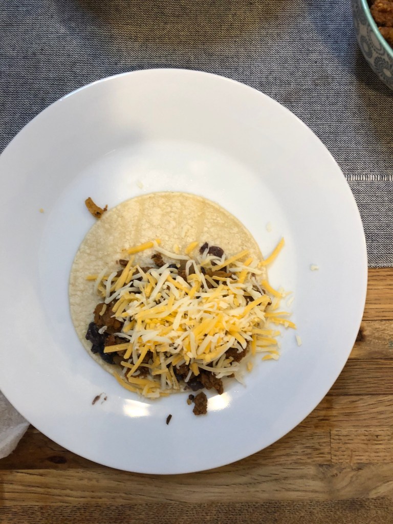 - Fold the tortilla over the filling.