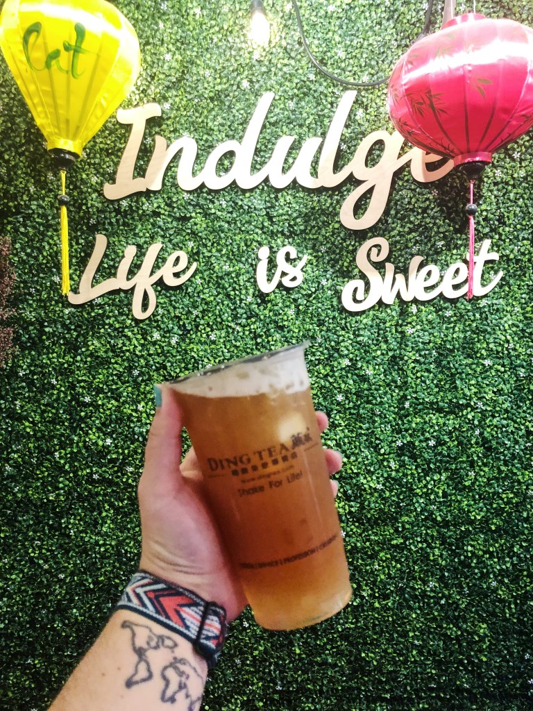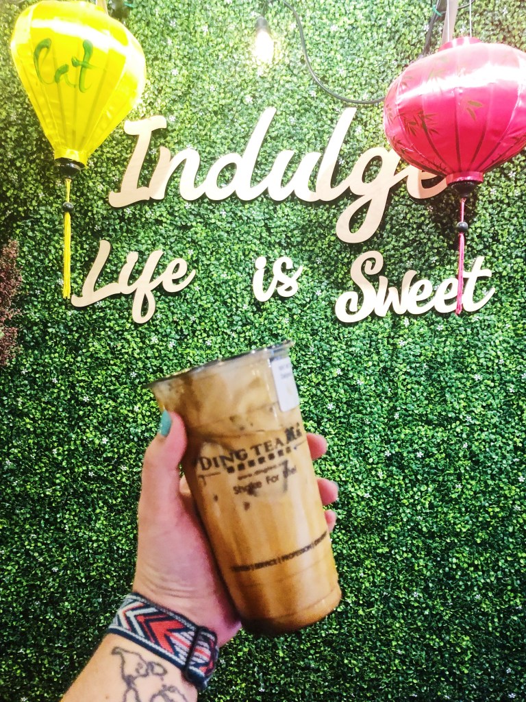 Updated Post: I recently tried some newer drinks Ding Tea offers- Taro Mash, Guava with Crystal Boba, Dalgona Coffee Milk Tea, and Condensed Milk Coffee. The Taro Mash was incredible – they filled the bottom with freshly mashed Taro and topped it with Green Milk Tea. It was slightly sweet and had a rich flavor which paired well with the green tea. It was very refreshing and 10/10 would recommend. The Dalgona was unique – if you are not familiar with it, it was a big trend when Covid first hit. You take instant coffee with a little bit of water and mix it until it becomes this whipped coffee and then serve with milk over ice. It was actually really good – I can’t 100% confirm how they make their Dalgona, but I assume it is very similar. The coffee was strong, but not bitter and was actually super creamy! My least favorite was the Guava. I have never been a big fan of fruit teas, but it is so hot here right now it sounded refreshing and I love guava things! This was entirely too sweet though, it tasted like I was just drinking straight sugar water. I couldn’t even finish it, but the crystal boba were pretty dope! I didn’t adjust the sweetness because honestly I didn’t think it would be THAT sugary, so I recommend adjusting the fruit teas down if you are not looking for a sugar rush.