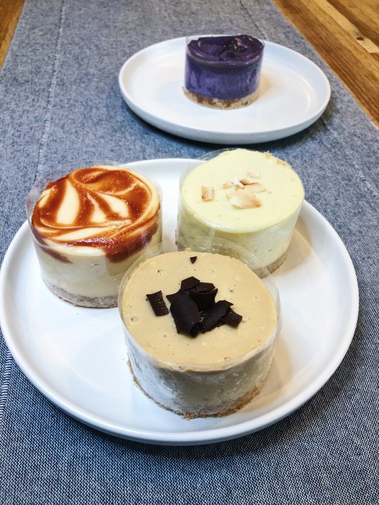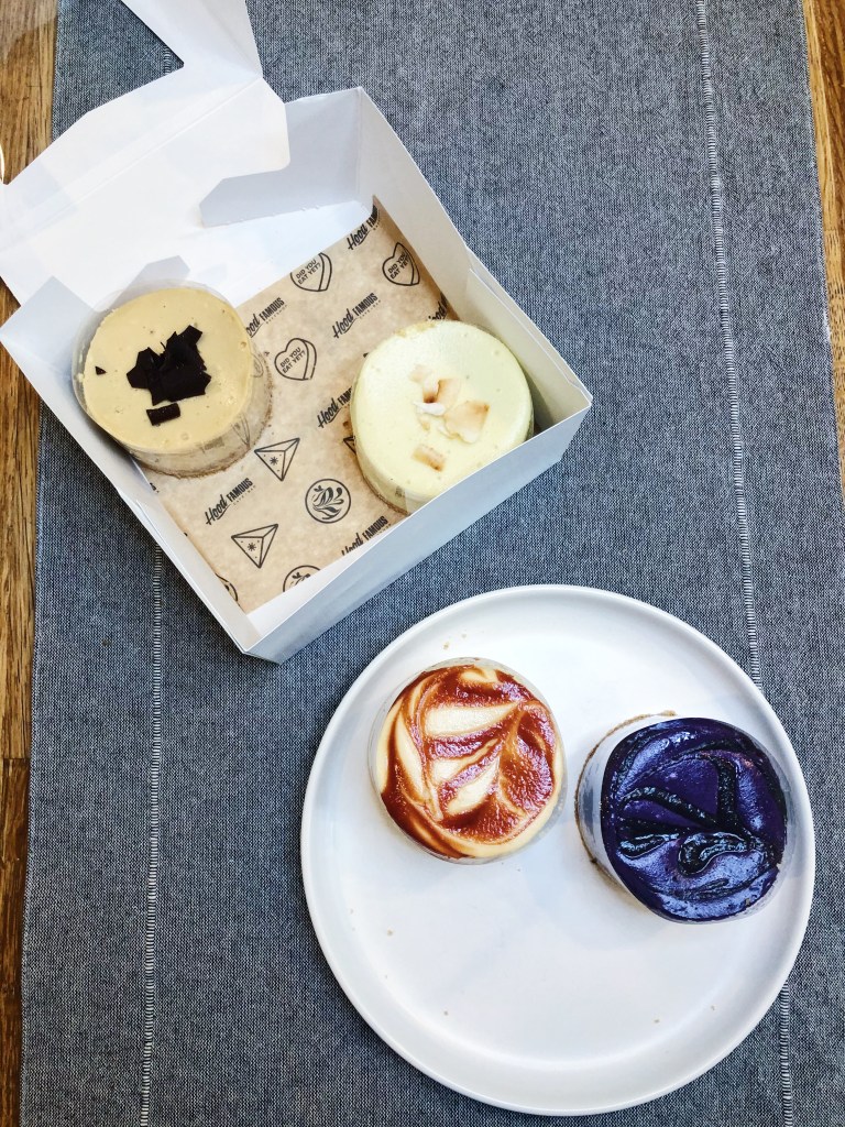 Of course I had to try their Iced Ube Latte ($5.25), 4 pack of assorted cheesecakes ($28), and 6 pack of ube cookies ($14). The cookies didn’t even make it home for photos, so that’s how tasty they are. They are light, chewy, and slightly sweet. Their Ube Latte is what dreams are made of. I mean, first off just look at how pretty it is! It was almost too beautiful to drink, but its coffee so was not about to let that go to waste. The sweet ube balances perfectly with the strong espresso for a wonderful afternoon pick me up! I also ordered the assorted cheesecakes which are the 4 most popular flavors – Ube, Vietnamese Coffee, White Chocolate Guava, and Coconut Pandan. They are each 4oz which are perfect for sharing or for an individual serving! My personal favorite was the panda because it is a very subtle sweetness with a nice coconut flavor. I also really enjoyed the Vietnamese Coffee, it has a very strong coffee flavor so if you love coffee, this is definitely the option for you! My least favorite was the Guava, but it was actually my husbands favorite. I am just not a huge Guava fan in general so it had nothing to do with the quality of the cheesecake, just not my cup of tea – i would still give it a 7 or 8 out of 10 tho! The cheesecakes were super creamy and exactly what you want from a cheesecake, with a rich, buttery crust. They use a coconut buttery biscuit crust, which honestly is perfect for all the flavors they offer. 10/10 would recommend to anyone as a must try in Seattle! Grab a latte, individual cheesecake, and a cookie and you’ll have yourself a wonderful afternoon treat that will make any day even better!