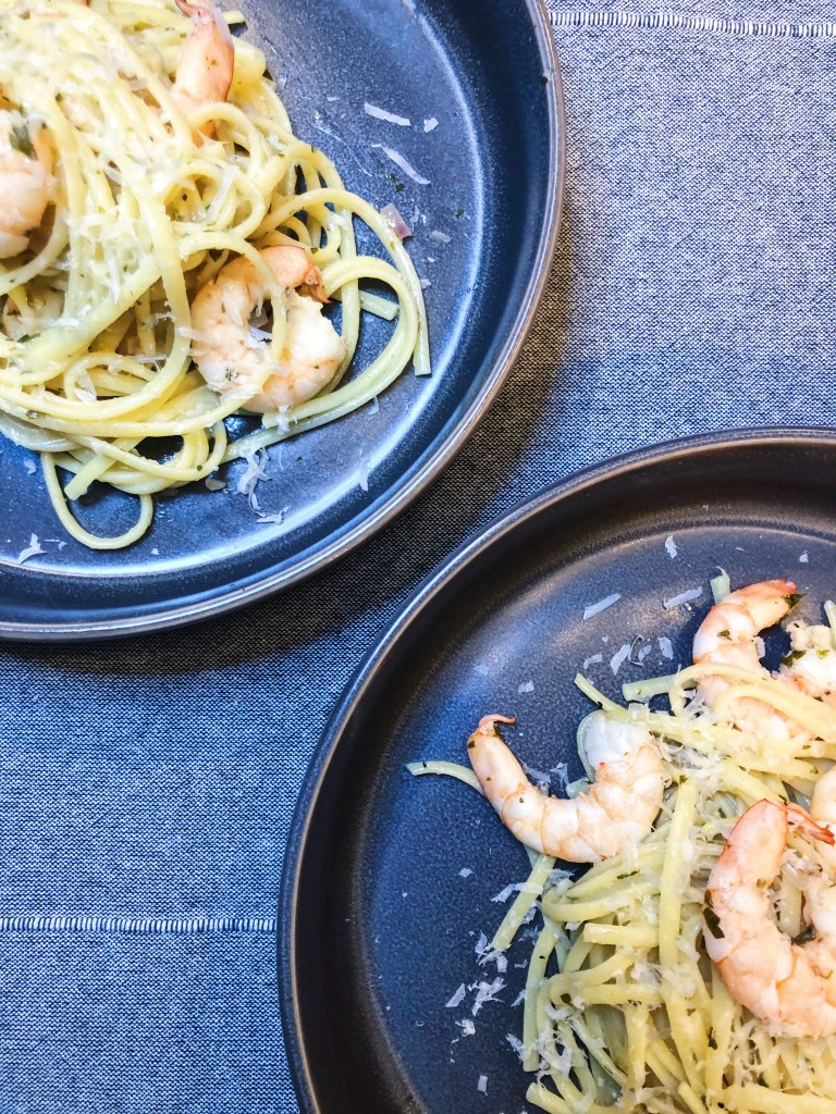 Pasta is always a good idea. And pasta with shrimp is an even better idea! This shrimp scampi is light and still indulgent but won’t leave you feeling too heavy and bloated afterwards. It is salty, lemony, and buttery. This is the perfect dish for a warm spring or summer evening with a crisp glass of white wine to sip on. It is also great for making your family or friends think you spent hours making a fancy dish – when in reality this dish takes only about 30 minutes and comes together easily. If you love shrimp, pasta, and wine – this is the perfect dish for you. Don’t worry though, the alcohol in the wine cooks out so this is safe for everyone to eat – well unless you have a selfish allergy, then you might want to steer clear of this dish.