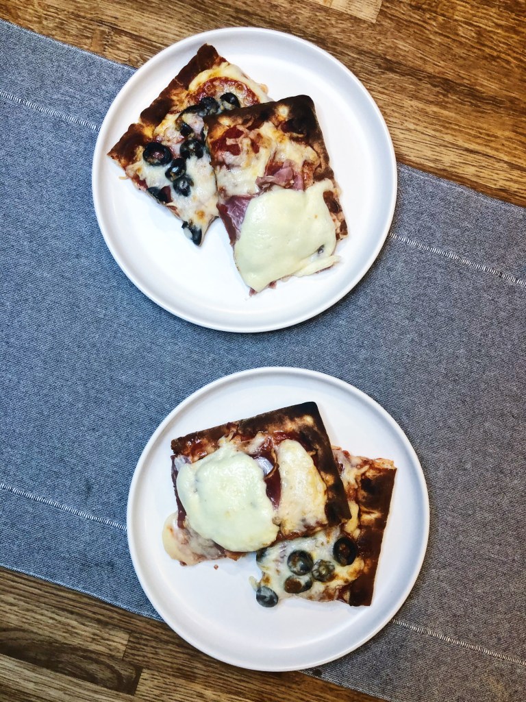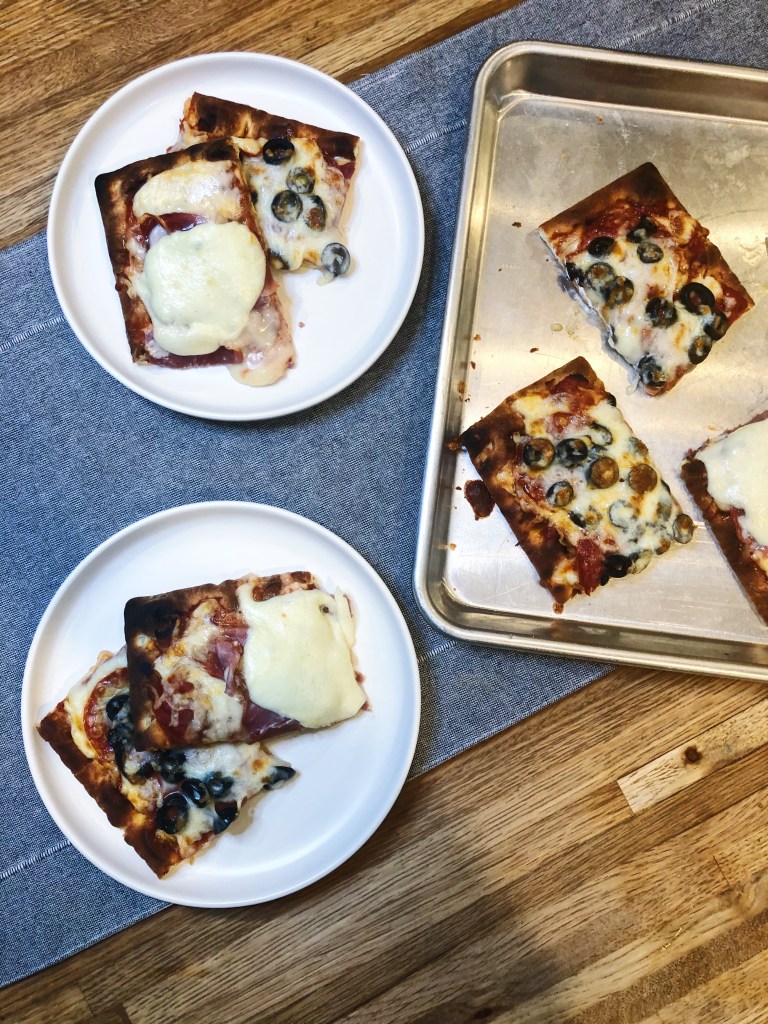 Pizza is great. But delivery can get expensive and time-consuming. Homemade pizza can also be a pain and messy. This is an option to counteract all of the above. It uses a pre-made crust that is ready to go – no cooking before you top it. All you have to do is top it with your favorite ingredients, pop it in the oven, and let the oven do the rest! I bought this crust from Trader Joes because they are superior and have great ready to go options for the lazy person in me. The crust from them is thin and light and doesn’t give that super doughy texture or cardboard taste most pre-made crusts do. This is more of a flat bread style option for comparisons sake. All you really need for this is the crust, sauce, and cheese plus your favorite toppings. The key here is to remove the pizza from the oven once everything is melty and warm, turn it on the broil setting, and pop it back in for a few minutes. This will result in that bubbly, slightly browned cheese that is delicious.