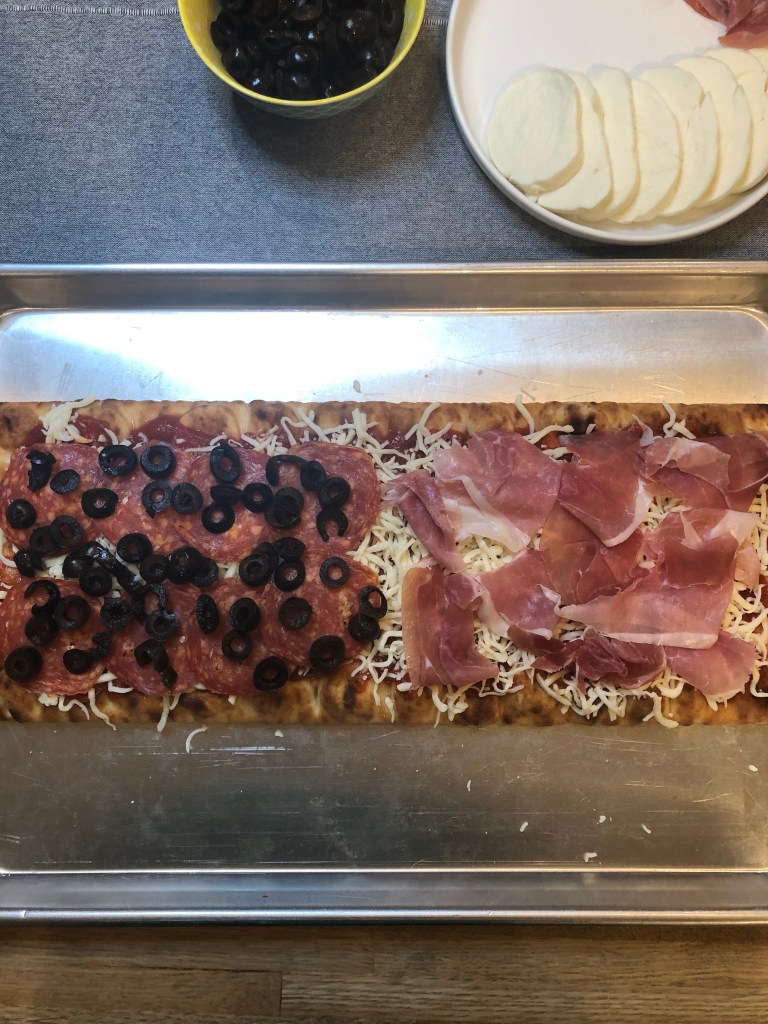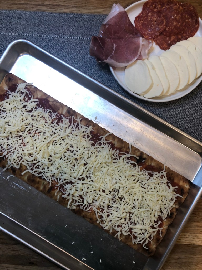 - Pizza Dough, you can use Pre-made or make it from scratch. I am using Pre-Made ready to go from Trader Joes.