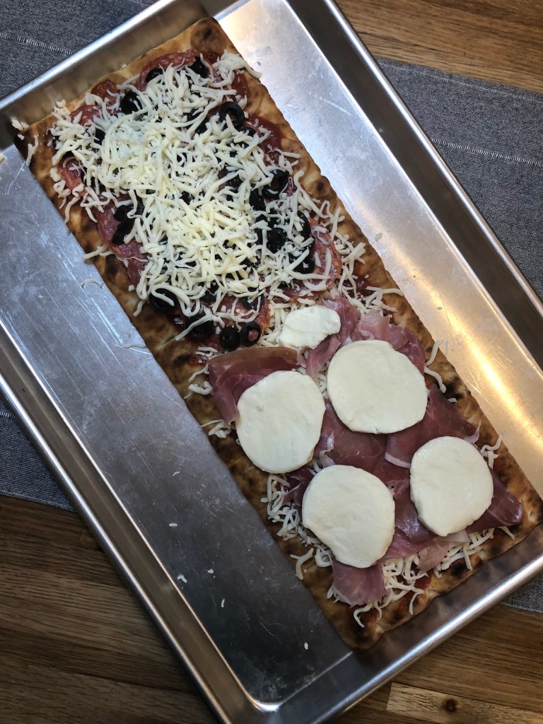 - Add the fresh mozzarella and your favorite toppings and then sprinkle with the remaining shredded mozzarella.