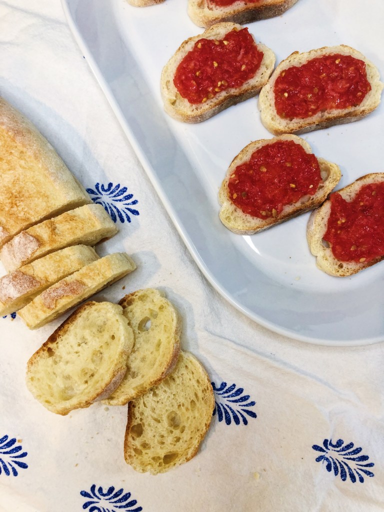 - While the bread is toasting, let’s make the tomato spread!