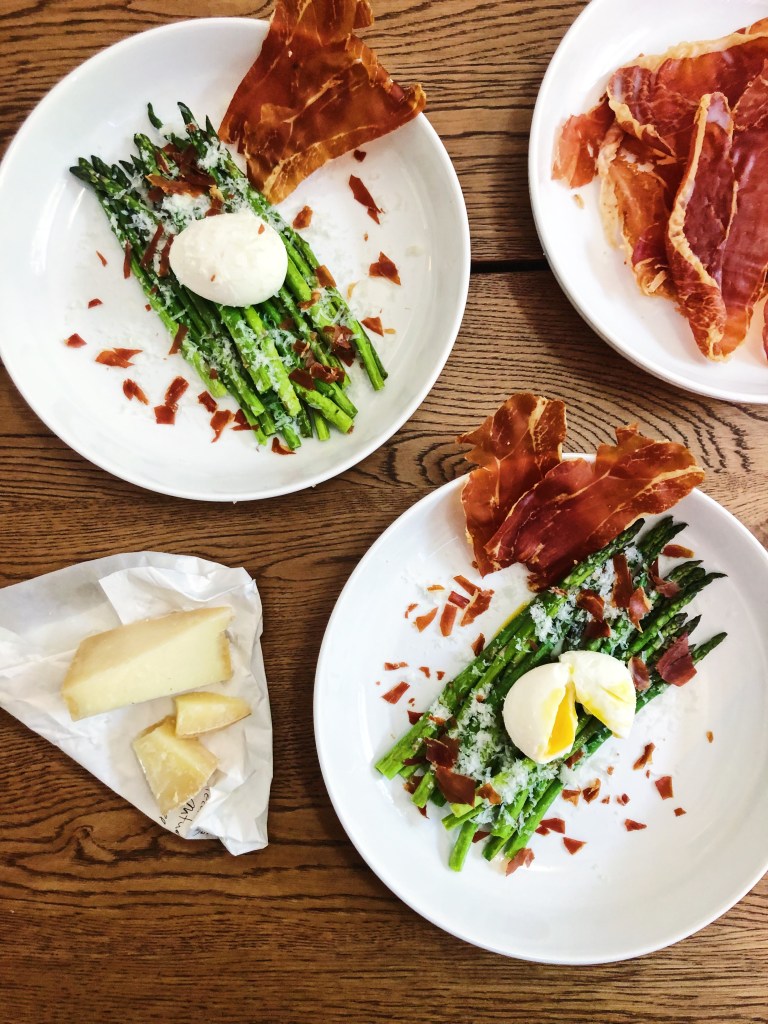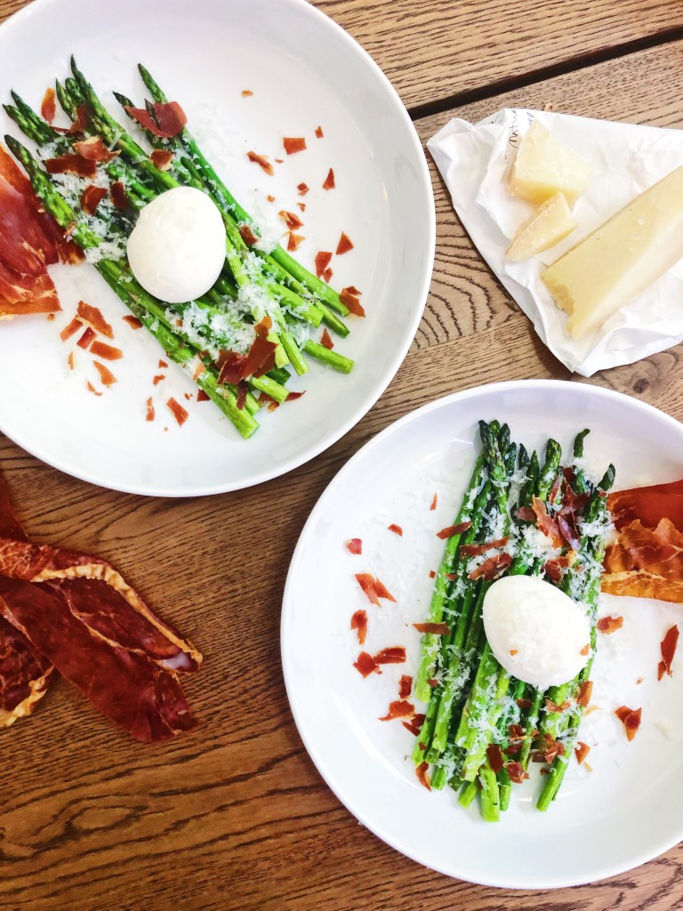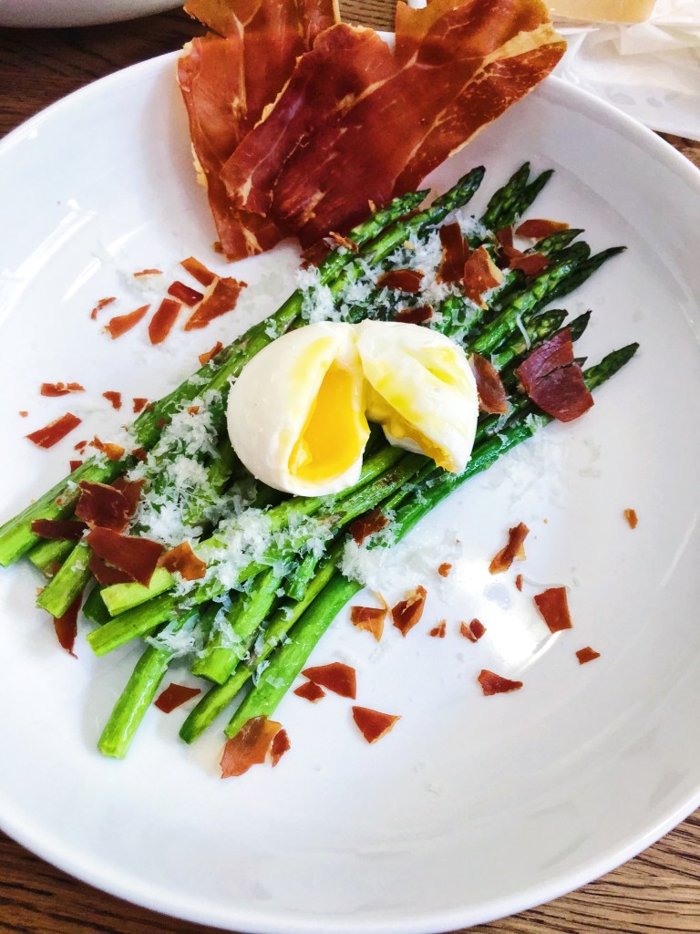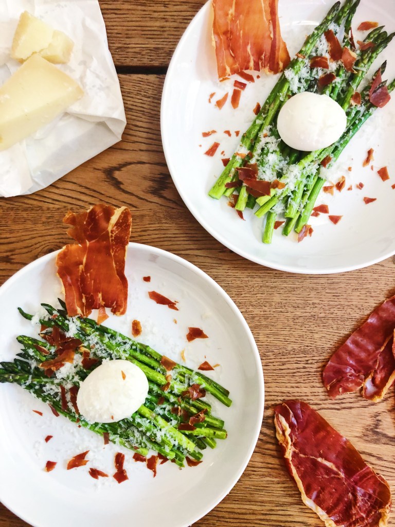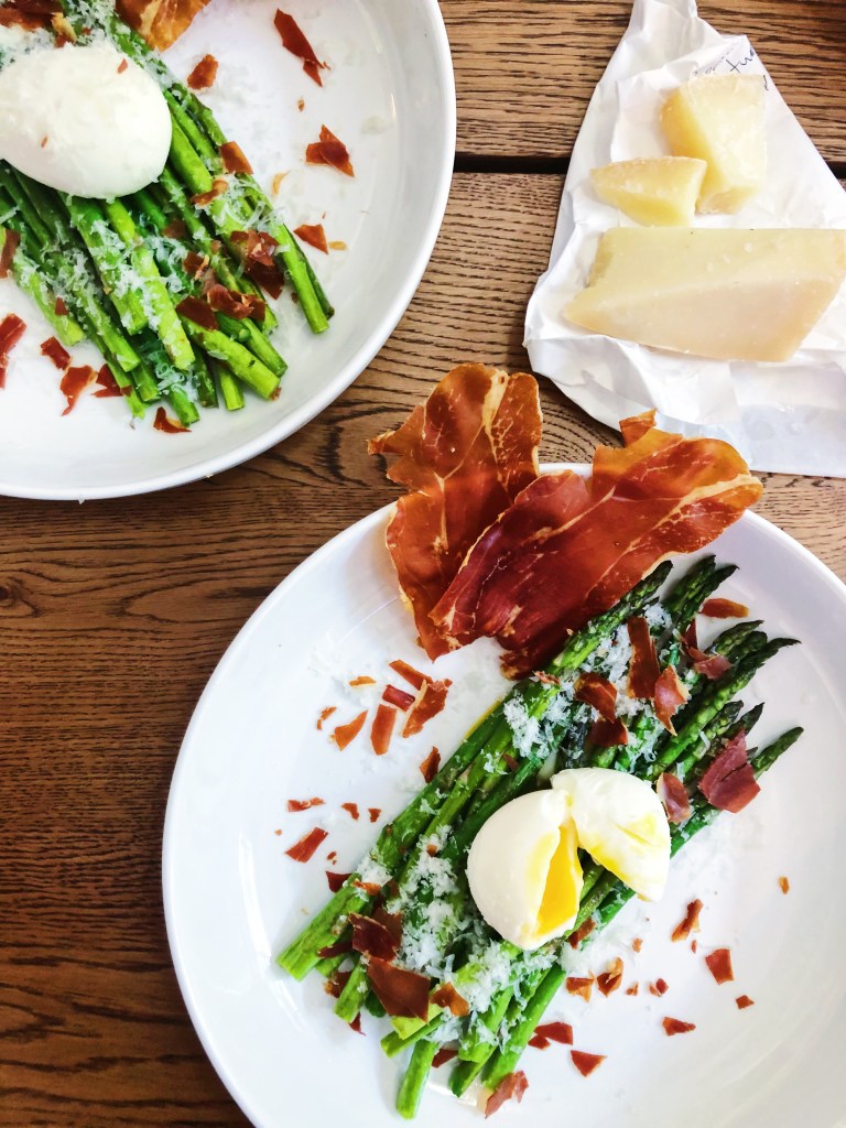 This dish is inspired by a meal I had about 4 years ago that I still think about to the day. I am not sure if the food was just that good, or if it was so tired and hungry from hiking all day – probably a mix of both though. Anyways, the restaurant had this grilled asparagus dish with a lemon butter of some sort and a poached egg on top. I thought it was weird to serve eggs and asparagus on the same plate for a dinner dish, but it somehow worked. I thought this would be a fun, delicious dish to make my own spin on – that is were the pecorino and crispy prosciutto come in. I also do not use lemon in my recipe – I actually meant to do some lemon zest on top for a fresh bite, but completely forgot until after it was devoured!