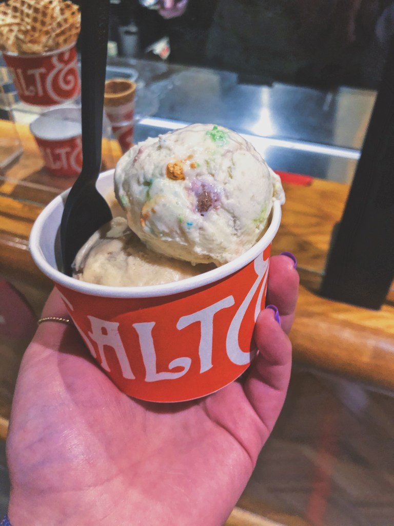 One of my favorite things about this shop is they have seasonal flavors they rotate fairly often to keep it interesting! Two of my favorite seasonal themes are “Cereal-ly delicious” and “Berries, Berries, Berries.” The cereal flavors brought me back to Saturday mornings watching cartoons with my dad in my pajamas in the early morning and eating all the sugary cereal my mom would not always allow. Their flavors included Cold Brew Cocoa Puffs, Pots of Gold & Rainbows, and Cornflake Cookies with Marionberry Jam to name a few! Their Berries flavors are perfect for summertime when berry season is in full force! The flavors include Birthday Cake and Blackberries, Wild-Foraged Berry Slab Pie, and Goat Cheese Marionberry Habanero.