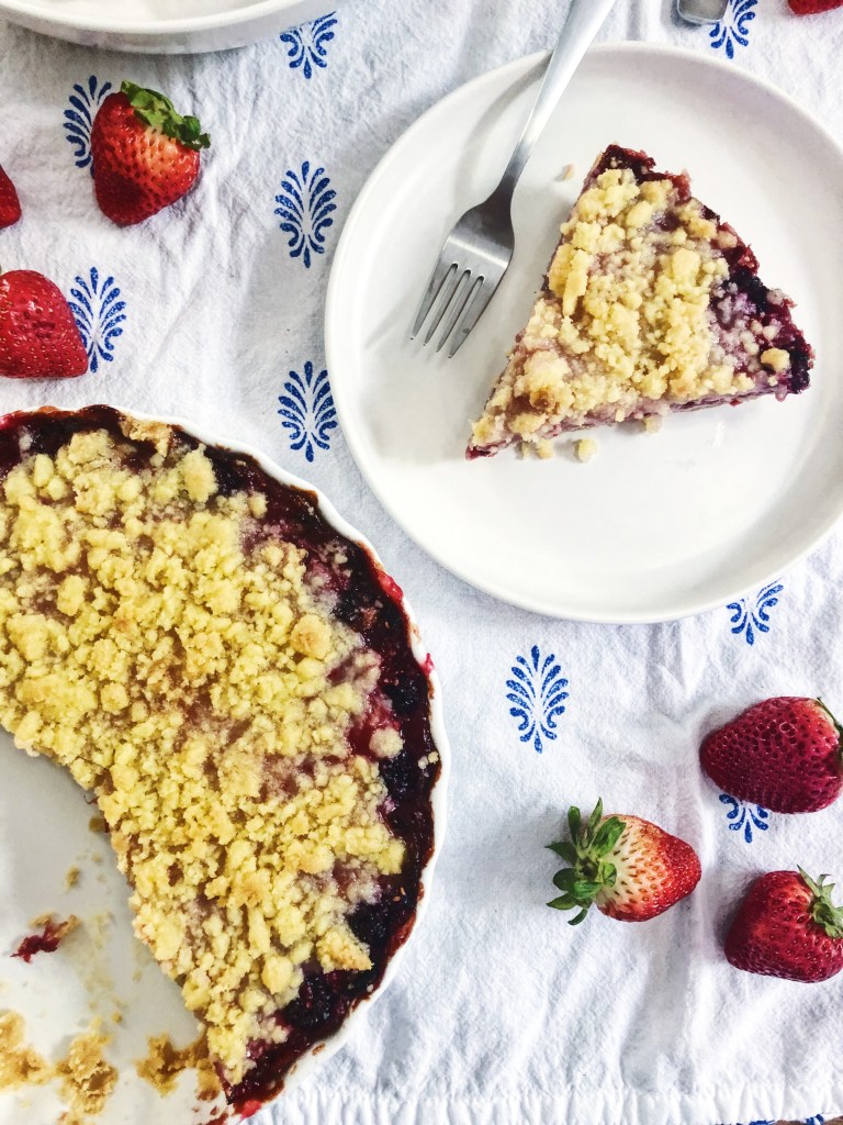 Summer isn’t over yet, which means you still have a few more weeks of delicious, fresh berries. And you need to make this recipe before summer ends! This crumble is buttery, tart, and sweet. It is everything you want in a dessert and it is so easy to make, which makes it taste even better! I use 3 types of berries here – strawberries, raspberries, and blackberries – I think these 3 compliment each other very well and provide beautiful and vibrant colors. You could also throw in some blueberries if you wanted to, but I think this is perfect on its own. These shortbread bars are very dense and great for sharing. I am warning you now, you will be tempted to eat the entire batch on one sitting because they are irresistible – but please don’t because the will give you a sugar high and probably a stomach ache! For even more deliciousness, serve with vanilla ice cream or whipped cream!