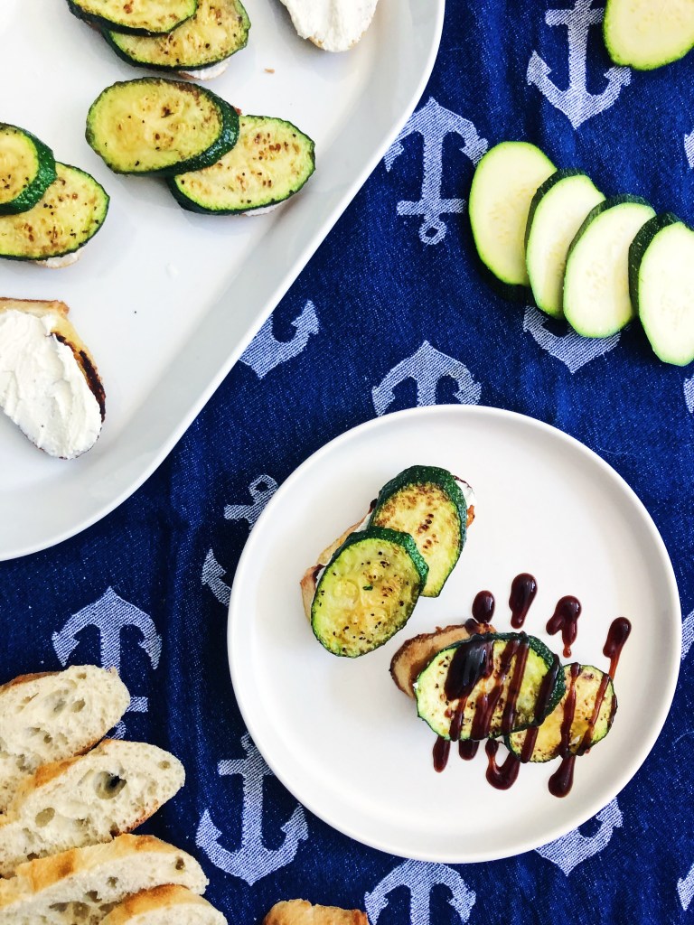 Summer isn’t just for fresh fruits – it is also for delicious vegetables! This recipe really highlights the simple zucchini and all it has to offer. Fresh zucchini can be so delicious if you prepare it well. Grilling or roasting it brings out a slight sweetness that doesn’t require much more than salt and pepper to make it pop! This simple dish tastes incredible and elevates the humble zucchini – all you need is a few ingredients and about 30 minutes of time to make this. Perfect for a dinner party, BBQ, or just a vegetarian friendly dinner or snack. This toast is crunchy, creamy, sweet and salty. For an elevated flavor, I drizzled on some fig balsamic for a bit of a tangy punch. This part is completely optional, but I do think it takes that dish to the next level and brings even more flavor.