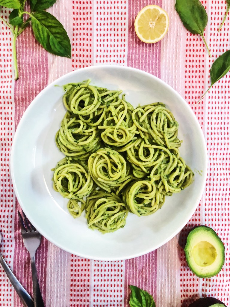 Everyone loves pasta, let’s be honest. It is the ultimate comfort food and there are so many shapes, flavors, sauces and combinations you can do with it. Seriously the options are endless. It is perfect for any diet, they even make gluten free pasta and pastas made from vegetables. Pasta is also great both cold and hot! This pasta is packed full of nutrients so it is relatively healthy. It is also creamy, tangy, and salty. It’s full of avocado and fresh basil which might sound like a unique combination, and it is but it works so well together. The lemon juice in this recipe helps cut through the fat from the avocados, cream and cheese to add an acidic punch of tang. I ate this pasta both hot and cold and I can tell you that it SLAPS both ways. What I also love about this recipe is although it is pasta, which can typically leave you feeling full, heavy and sluggish, this avocado basil sauce really lightens up the pasta and it is very refreshing. Try it out and let me know what you think!