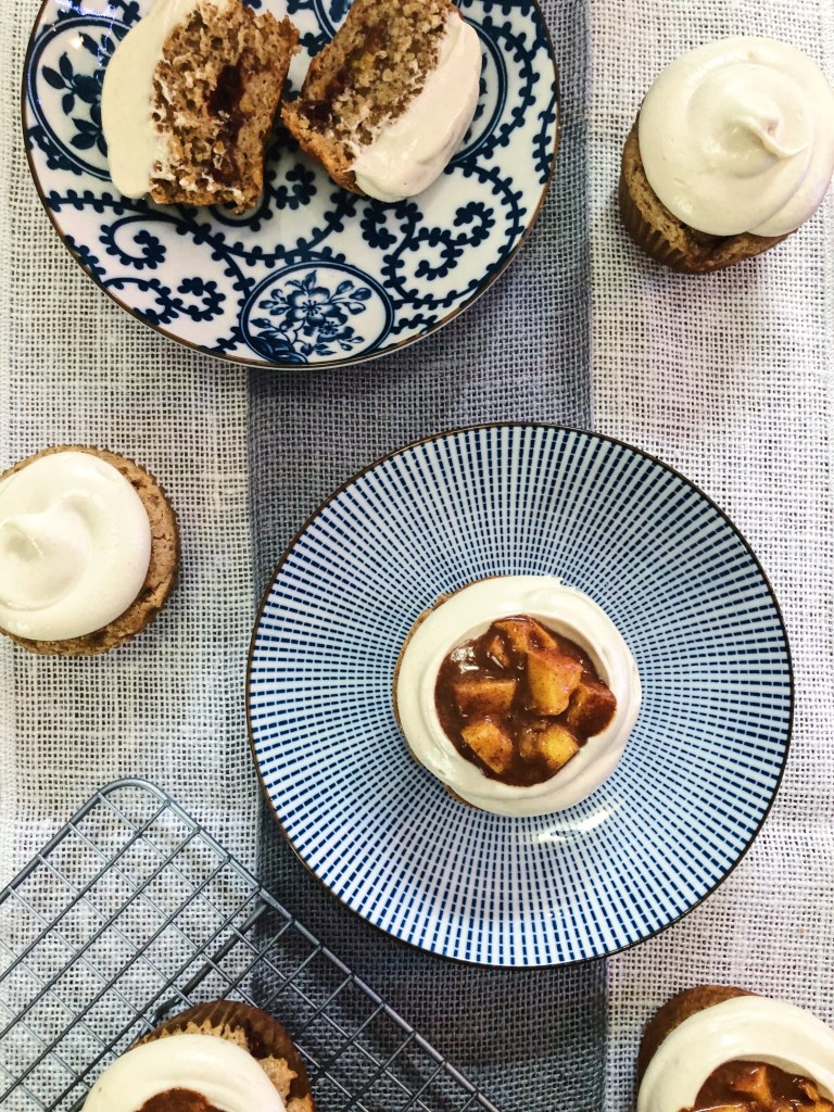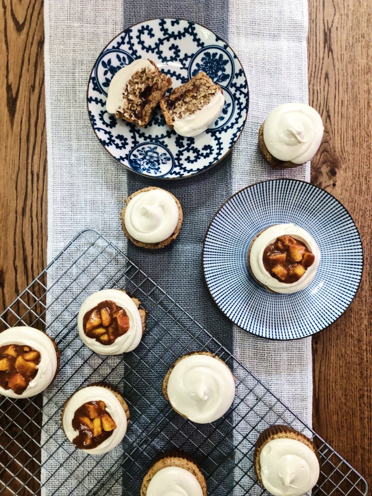 - When the cupcakes are completely cooled, top with the frosting and any remaining peach filling!