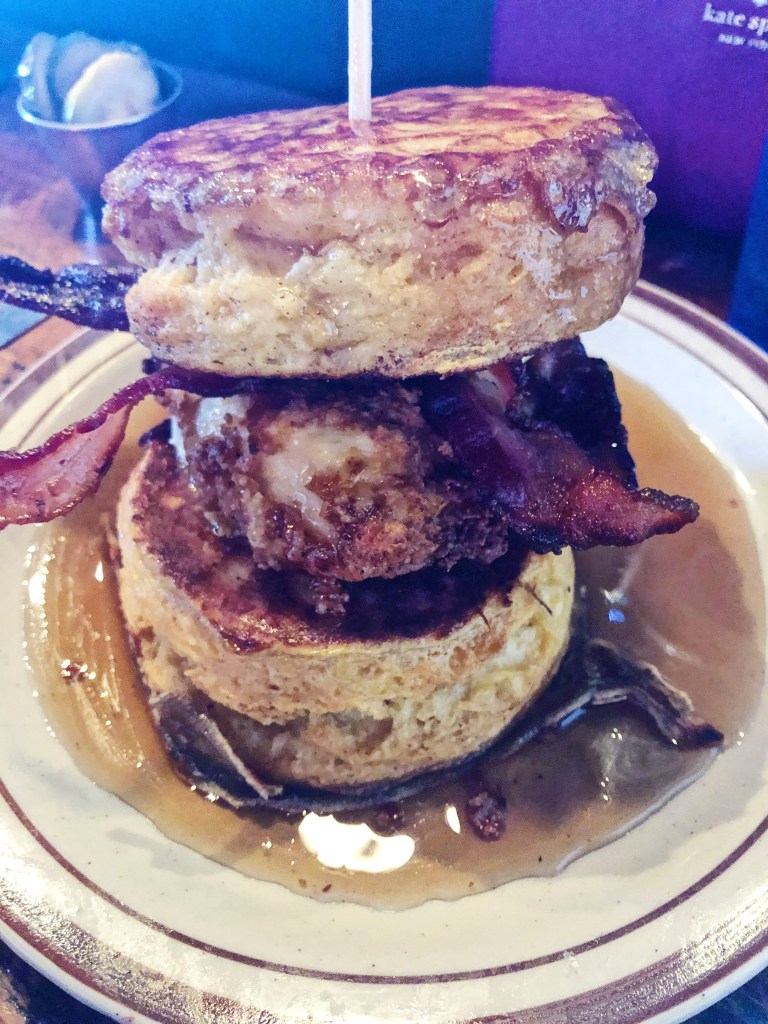 Denver Biscuit Company is a staple of Denver. If you have been to Denver and haven’t been to this establishment then either you live under a rock, don’t like biscuits, or you had a horrible tour guide. Whatever the reason, I urge you to make this a must have spot for your next trip there. Is it heavy? Absolutely! Is it also incredibly delicious? OH YES! When my friend mentioned this place, I almost instantly had a heart attack looking at the menu. I scoured the menu to try to find something semi-healthy, but my options were a bit limited and I figured I was on vacation so screw it, time to indulge! They have biscuit plates and biscuit sandwiches as well as a biscuit cinnamon roll that was the size of my face. Each of their dishes have fun names like The Winona, The Lola, and The Tomahawk to name a few. I debated between a few dishes, but ultimately selected The Lola. It comes with crispy buttermilk fried chicken, bacon, house made honey butter and then smothered in maple syrup smashed between two fluffy biscuits. As if this dish couldn’t get any better, you can also “french toast” the biscuits – I think this is a local secret because it was not listed on their menu anywhere. They basically take the biscuits, dunk them in an egg + cinnamon mixture and grill them to perfection. If you want to sound like a local, this is the move. Honestly, this is the move no matter what. My friend ordered the biscuits and gravy – you can choose between mushroom or sausage gravy. She went with sausage as she should. Although her dish was much less intimidating than mine, the flavor was equally matched. Fluffy biscuits smothered in warm, thick gravy. We left this place both stuffed and satisfied. Would suggest if you go here to plan a nap right after or a walk around Washington Park just a few miles away. Also, if you come here on the weekend, you are in for a bit of a wait. They do offer hot coffee and board games for those waiting – I recommend though leaving them your phone number, taking a stroll around the block and grabbing a latte from Metropolis Coffee up the block while you wait for them to text you. If you have read this far thank you – I will impart one more cool fact I learned. At night they turn in to a pizza place called Fat Sully’s. What a genius business model – biscuits in the morning, pizza at night. They are not the only denver restaurant to do this and I was surprised I had never heard of that before – so smart.