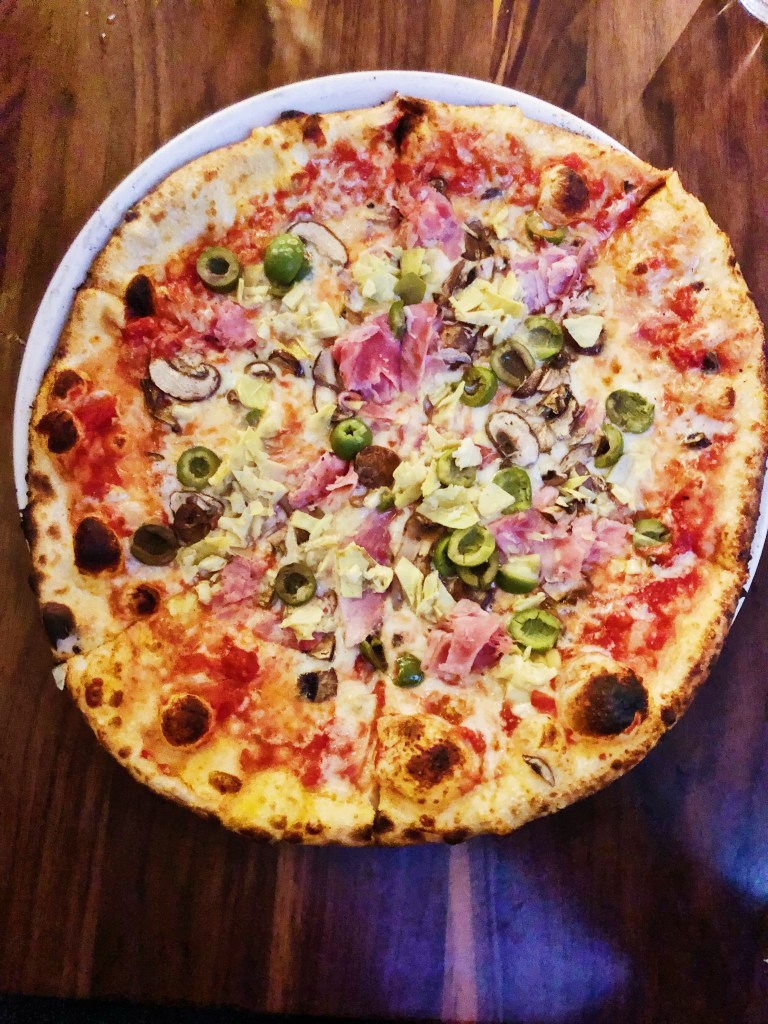 Okay, so let me start by saying I failed at taking pictures at this place, I have a few videos (you can find those on my instagram page), but I was so in awe the entire time that I didn’t even think about pictures until it was too late. I managed to snap one of this glorious pizza. This place though is a food lovers dream. Located in the RiNo district in Denver, this place is called Central Market and has 11 vendors – including a full bar. It is in an old warehouse looking building with red brick and arched glass windows. They have everything you could want – wood fired pizza, charcuterie, ice cream, a butcher, a salad spot, coffee, specialty chocolates, a fish shop, bakery, and a deli with sandwiches. For all their vendors and information click here. We went on a Friday night and it was packed – almost looked like a world pre-Covid. The open seating model allows you to roam around and grab food and a drink and converge with your friends at a table. It is the perfect spot when you have a big group, indecisive friend, or a picky eater because you are sure to find something that everyone will eat. We opted for Vero – the wood-fired pizza spot. They had a solid list of pizza options, with a variety of toppings from the classic margherita to more adventurous mushroom pizza. We got the Capricciosa – san marzano tomato sauce, mozzarella, prosciutto cotto, mushrooms, olives and artichoke. Deliciously salty! This was pizza perfection – you get that snap and crunch on the outside from the slightly charred crust and the light, bouncy inside. No ranch needed here when you have a pizza that can stand on its own. Whether you’re looking for pizza or just a great foodie spot, check this Central Market out for the ultimate foodie night and try all the delicious local vendors this place offers.