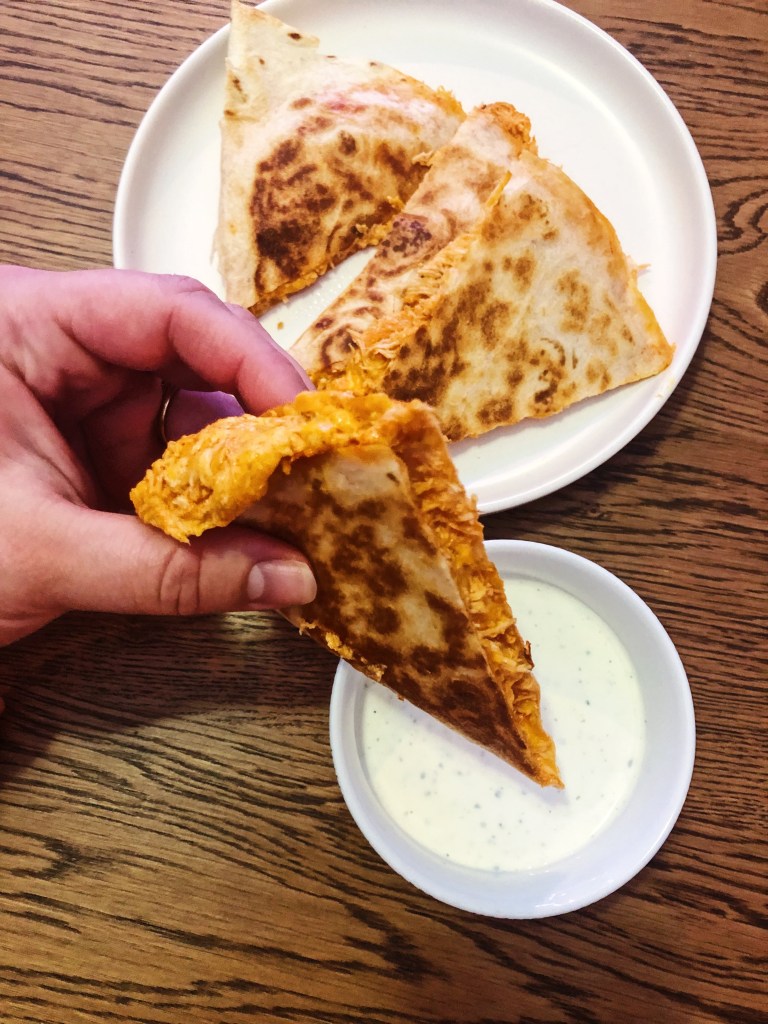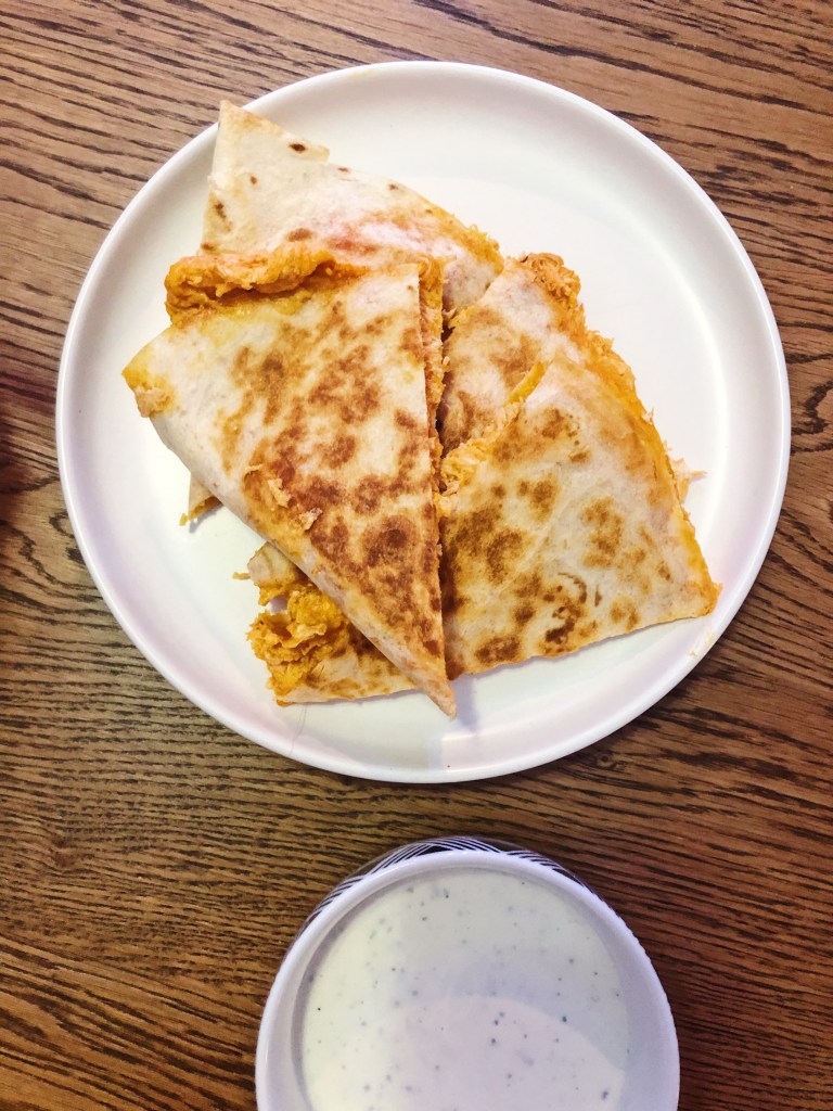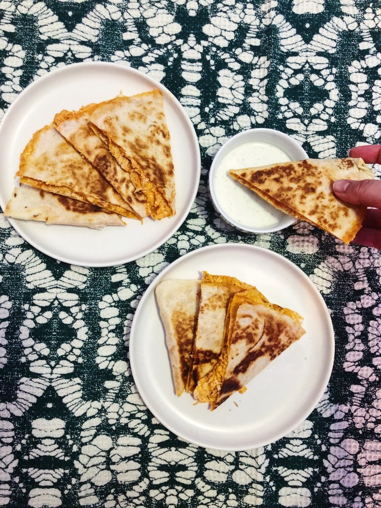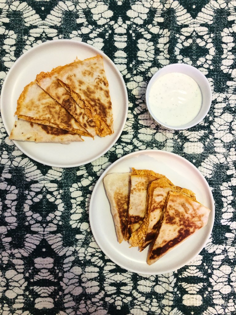 4 thoughts on “Buffalo Chicken Quesadilla”