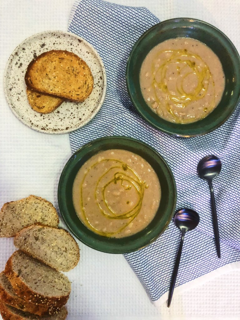 - Add the remaining beans to a blender and add in the stock (add about 1/2 cup at a time) and blend until smooth. *You will want to add the stock little by little to prevent a mess.*