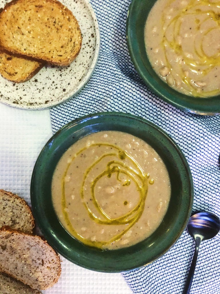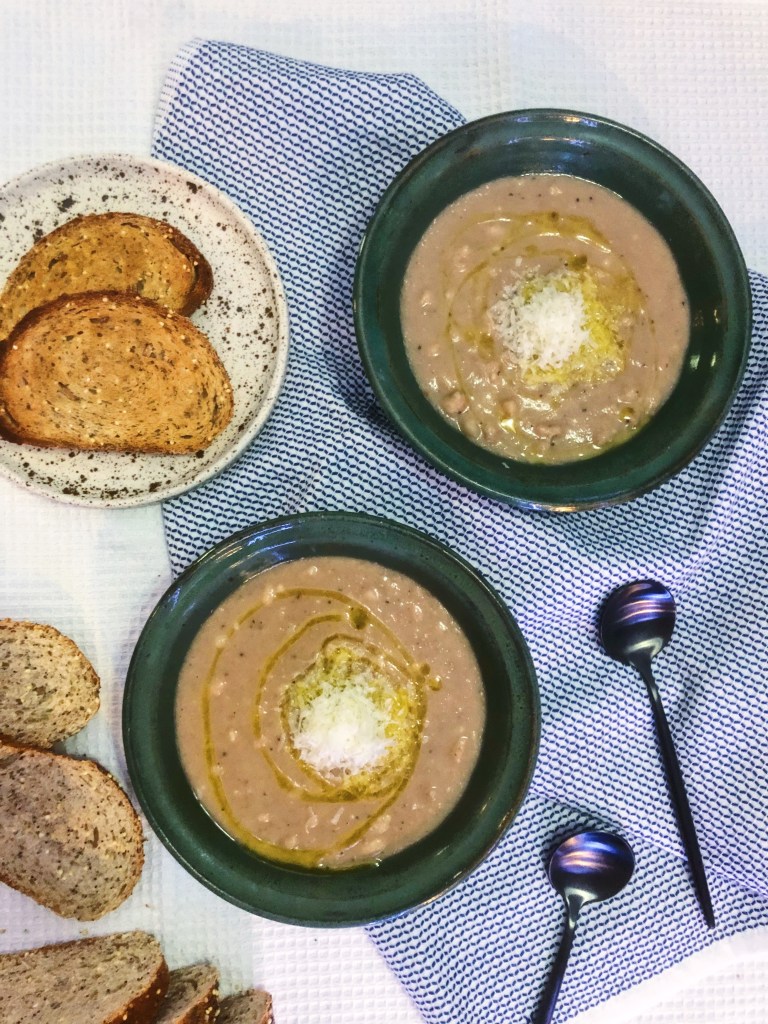 This soup is too easy not to make! It requires minimal effort and only a few ingredients. This white bean soup uses two types of beans – great northern beans and navy beans. In the end you are left with a creamy, hearty bean soup with tons of flavor and textures. The key here is to keep a portion of the beans whole to keep that texture. I am all for creamy, no lump soup but this was in perfect with the whole beans! This takes less than 30 minutes from start to finish to get this soup ready, so it really is a no brainer. This soup would also be delicious with the addition of some shredded chicken or beef for some extra protein. I also love topping this with some freshly grated parmesan and a drizzle of olive oil. And definitely don’t forget the crusty bread on the side or better yet, a grilled cheese for dunking!