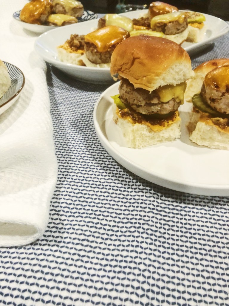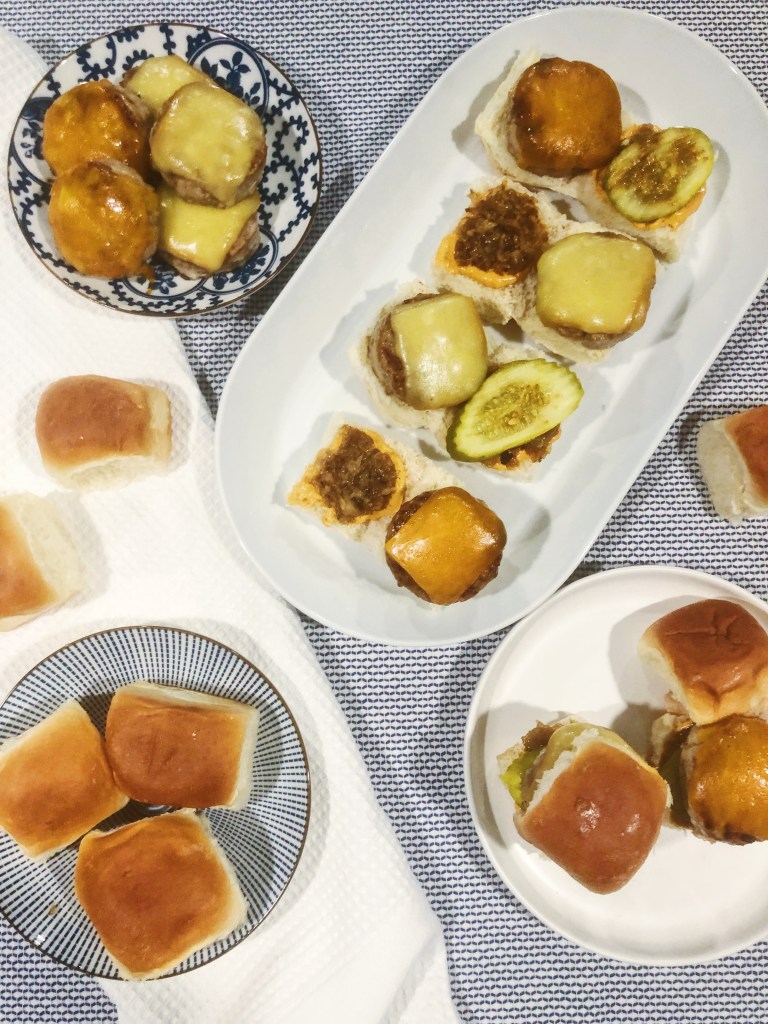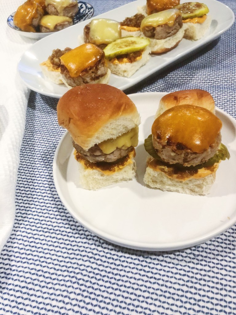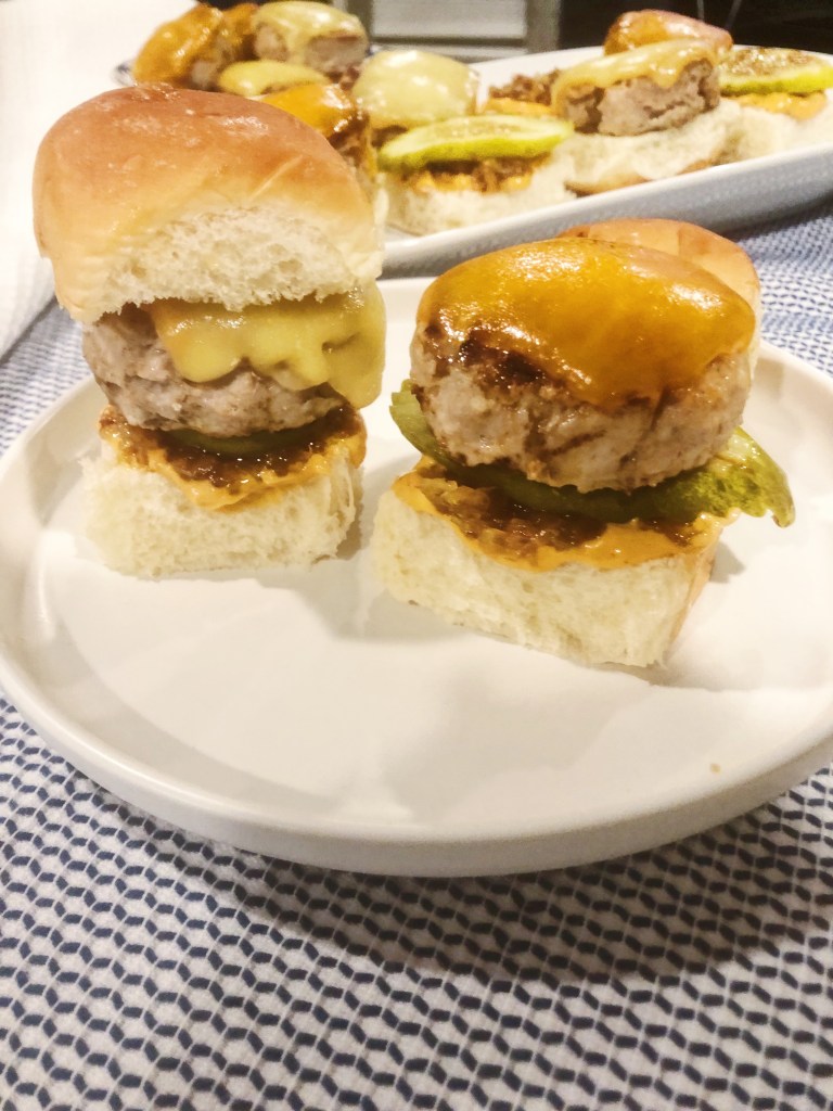 Burgers are great, but sliders are definitely superior! They are way more fun to eat because who doesn’t love eating miniature versions of their favorite foods?! If a menu has an option for sliders vs a burger, you better believe I am getting the sliders 100% of the time. These sliders are made with turkey instead of beef, so they are slightly healthier but you won’t be able to taste the difference. I know turkey burgers can be bland and not everyone’s favorite, but these have so much flavor on their own and then pairing them with caramelized onions just puts them on a whole new level. I also opted to top mine with pickles (a classic) and a harissa mayonnaise I found at Whole Foods that added a bit of heat with a rich flavor. You can make these as simple or as fun as you want! Sliders are a great option for a party as finger food or for a fun family night where everyone can customize them to their liking. Grab a bunch of toppings and let the fam or friends go crazy!
