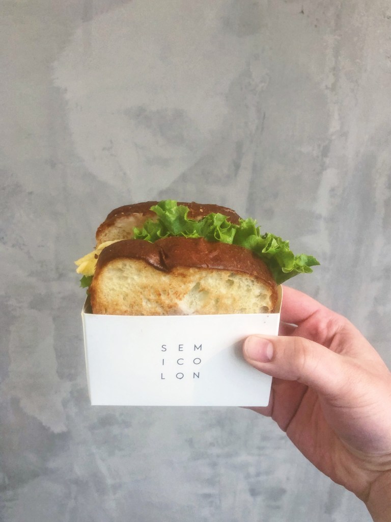Semicolon is a cut little cafe located in Bellevue! They also have locations in New Jersey and New York City. Their name, semicolon, is to represent the symbol of a semicolon which indicates a pause between two independent clauses. They want the cafe to be a place you can come and pause and get that feeling of rest during your day. Their Bellevue location is very calming and neutral upon walking in and is a great spot to pick up a coffee, grab a bite to eat, or meet up with friends for a conversation. The menu is simple, but delicious. It features classic and specialty lattes, smoothies, sandwiches, and bingsoo (shaved ice). There are 8 sandwiches you can choose from and they all feature scrambled eggs, fresh vegetables, and a tasty sauce to bring out all the flavors. They’ve got bulgogi, lox, mushroom, avocado, chicken, and a BELT (bacon, egg, lettuce, tomato).