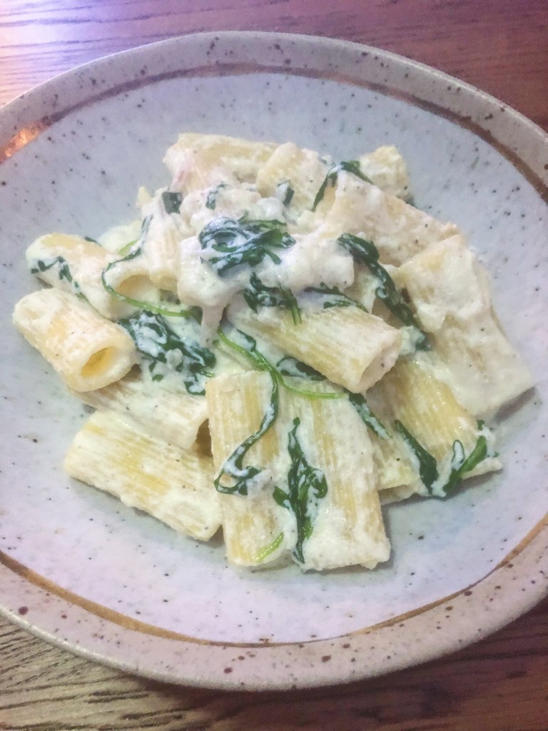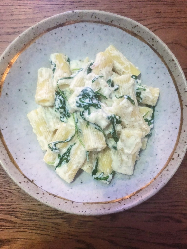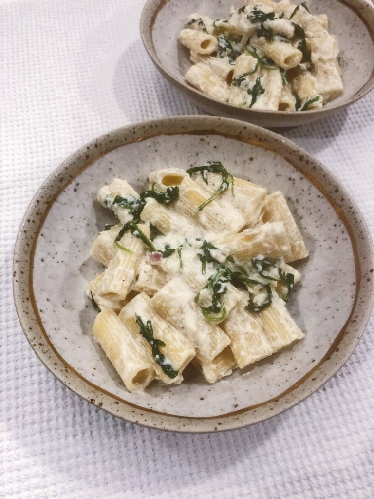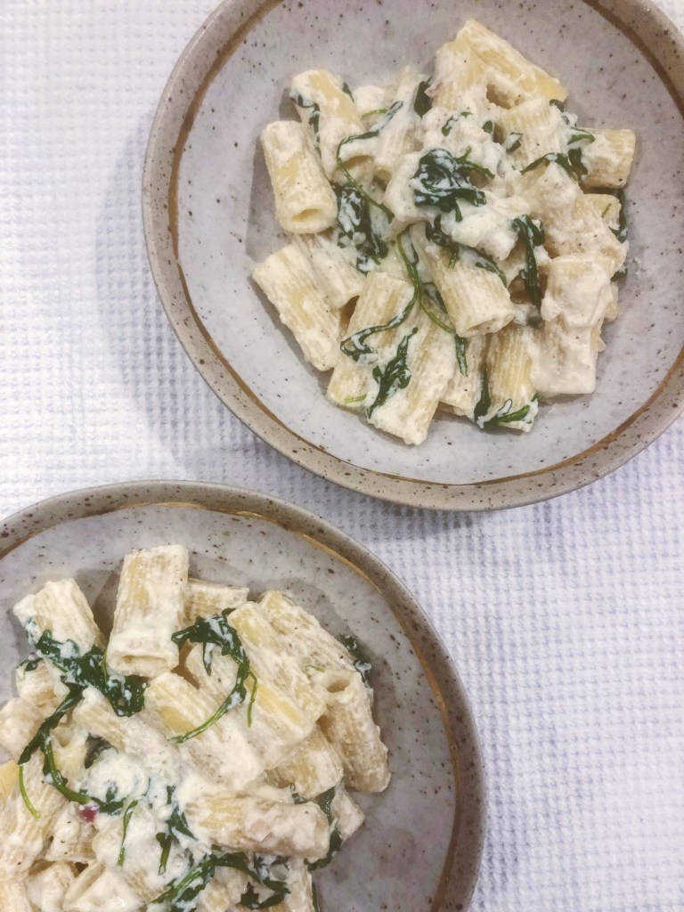 Light, creamy, refreshing. This dish is wonderful when you want a pasta that will leave you satisfied but not too heavy. Yes there is a ton of cream and cheese in it, but the lemon and arugula act as a source of acid to brighten the dish up – really complementing each other. You could opt for a different pasta shape, but the rigatoni is superior for this sauce in my opinion because it gets in all the nooks and crannies. The sauce is thick enough that it really sticks and fills the inside of the rigatoni. If you are looking for some protein with this dish – chicken breast or shrimp would be a delicious pairing to keep it light and fresh, but don’t worry, the pasta is phenomenal on by itself. So great for the upcoming spring season when it’s not too cold, not too hot outside.