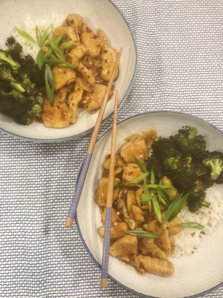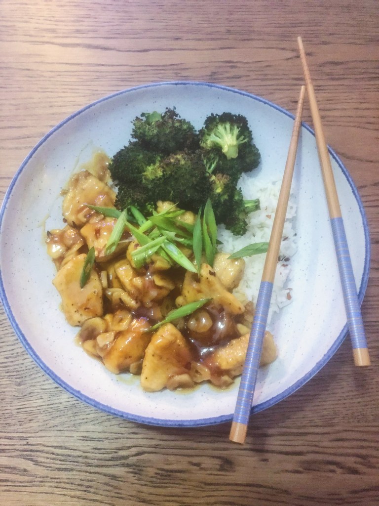 I made this recipe a while ago and actually completely forgot to share it! You can also tell it is a bit older because my phone camera was really starting to decline at this point, so the photos are not my best work. But this dish sure is! It is literally so quick and easy to make and so tasty. It is on the sweeter side, so if you are wanting something a bit spicier add some sriracha or chili flakes to really make it pop. This dish though is garlicky and sweet without being too much, the garlic really helps to even out the sweetness and definitely serve it alongside roasted broccoli and white rice for the best combination.